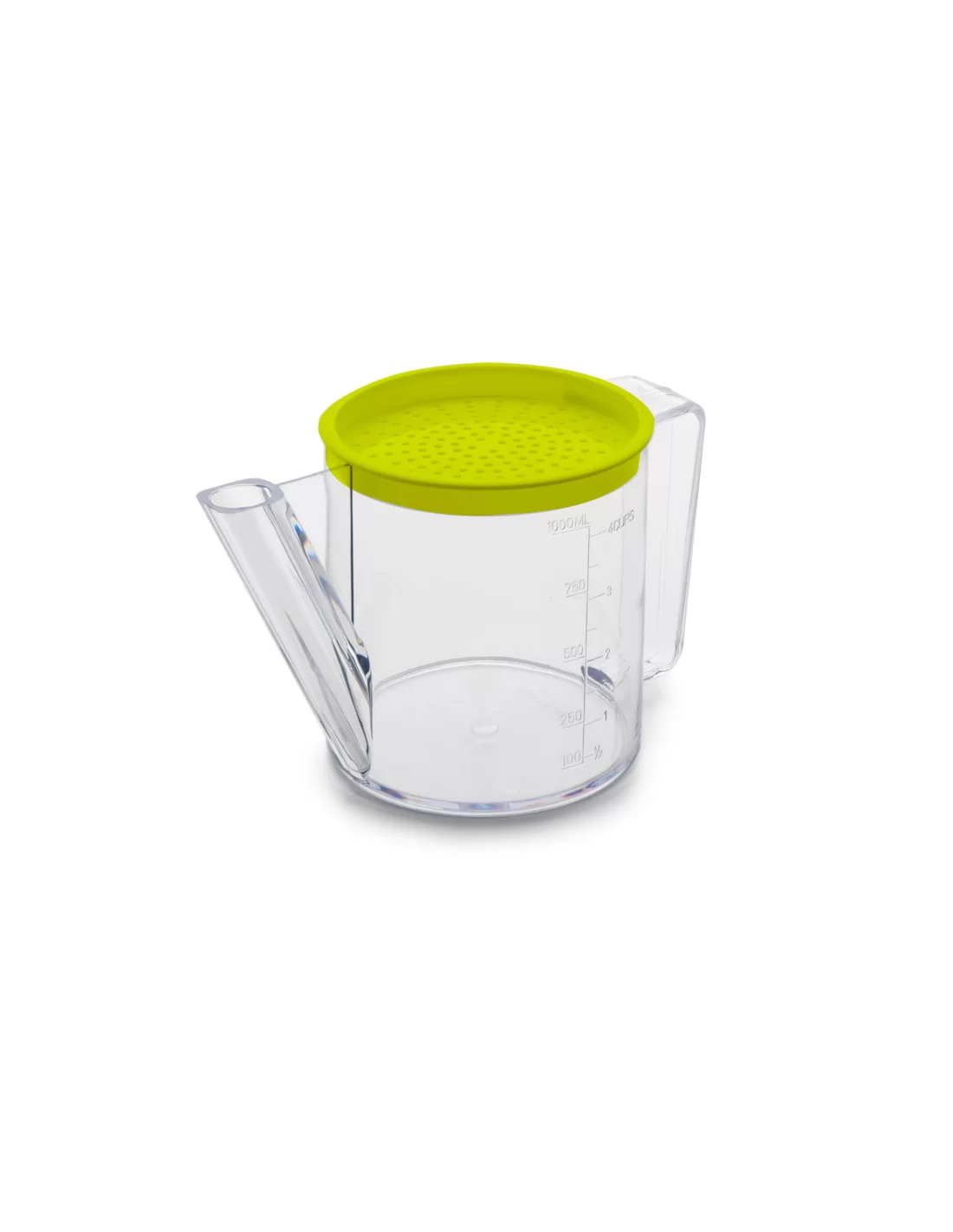 Сепаратор для жиру з фільтром та мірною шкалою Ibili 795900 об'ємом 1 л — це функціональний кухонний інструмент «2 в 1», виготовлений із високоякісного міцного пластику. Спеціальна конструкція з низько розташованим зливним носком дозволяє легко відокремлювати чистий бульйон, соус або підливу від жиру, який піднімається на поверхню, забезпечуючи приготування більш здорових та дієтичних страв. Виріб оснащений знімним сітчастим фільтром, який ефективно затримує шматочки овочів, м'яса та інші тверді частинки при переливанні рідини. Завдяки чіткій мірній шкалі на корпусі пристрій можна використовувати як звичайний мірний кухоль для точного дозування інгредієнтів. Модель відрізняється ергономічною ручкою для надійного захоплення та легкістю в догляді, стаючи незамінним помічником для прихильників здорового харчування та професійного приготування перших страв.