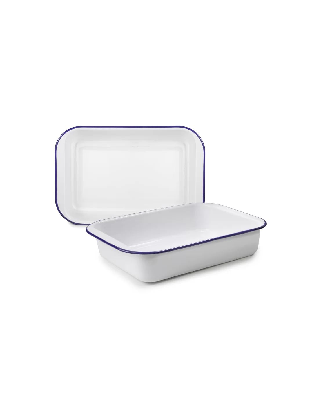 Деко для запікання емальоване Ibili серії Blanca 905437 — це професійний посуд для приготування об'ємних страв завдовжки 37 см, завширшки 24 см та заввишки 7 см, виготовлений із високоякісної емальованої сталі, що завдяки своїй міцності та термостійкості ідеально підходить для запікання м'яса, овочів або приготування запіканок прямо в духовій шафі. Кожен виріб виготовляється вручну, де білосніжна емаль та традиційний синій кантик наносяться майстрами індивідуально, що надає посуду унікального характеру та автентичного вигляду, причому сталева основа дозволяє використовувати деко на газових плитах для підігріву чи попереднього обсмажування. Матеріал вирізняється високою гігієнічністю, не вбирає сторонні запахи, стійкий до впливу фруктових кислот і розрахований на інтенсивне миття в посудомийній машині, що гарантує тривалу експлуатацію та збереження первинної білосніжності навіть за умов щоденного професійного навантаження в закладах із великим потоком гостей.