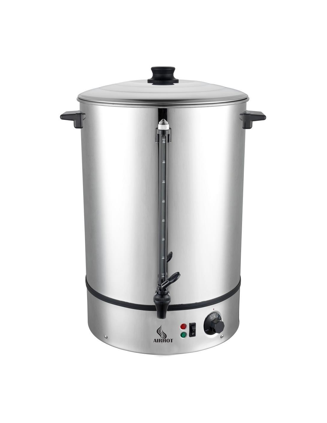 Електричний водонагрівач Airhot WB-30 заливного типу є ефективним рішенням для швидкого отримання окропу у великих обсягах, що дозволяє якісно обслуговувати значну кількість людей. Завдяки місткому резервуару об’ємом 30 літрів та корпусу з нержавіючої сталі, обладнання ідеально підходить для ліній роздачі, кафе, ресторанів, навчальних закладів та офісів. Пристрій оснащений системою візуального контролю рівня води та автоматичним регулюванням температури в діапазоні від +30 до +100 градусів. Безпека експлуатації забезпечується вбудованим аварійним термостатом, а використання знімного закритого тена та світлового індикатора нагріву робить роботу з приладом простою та надійною.