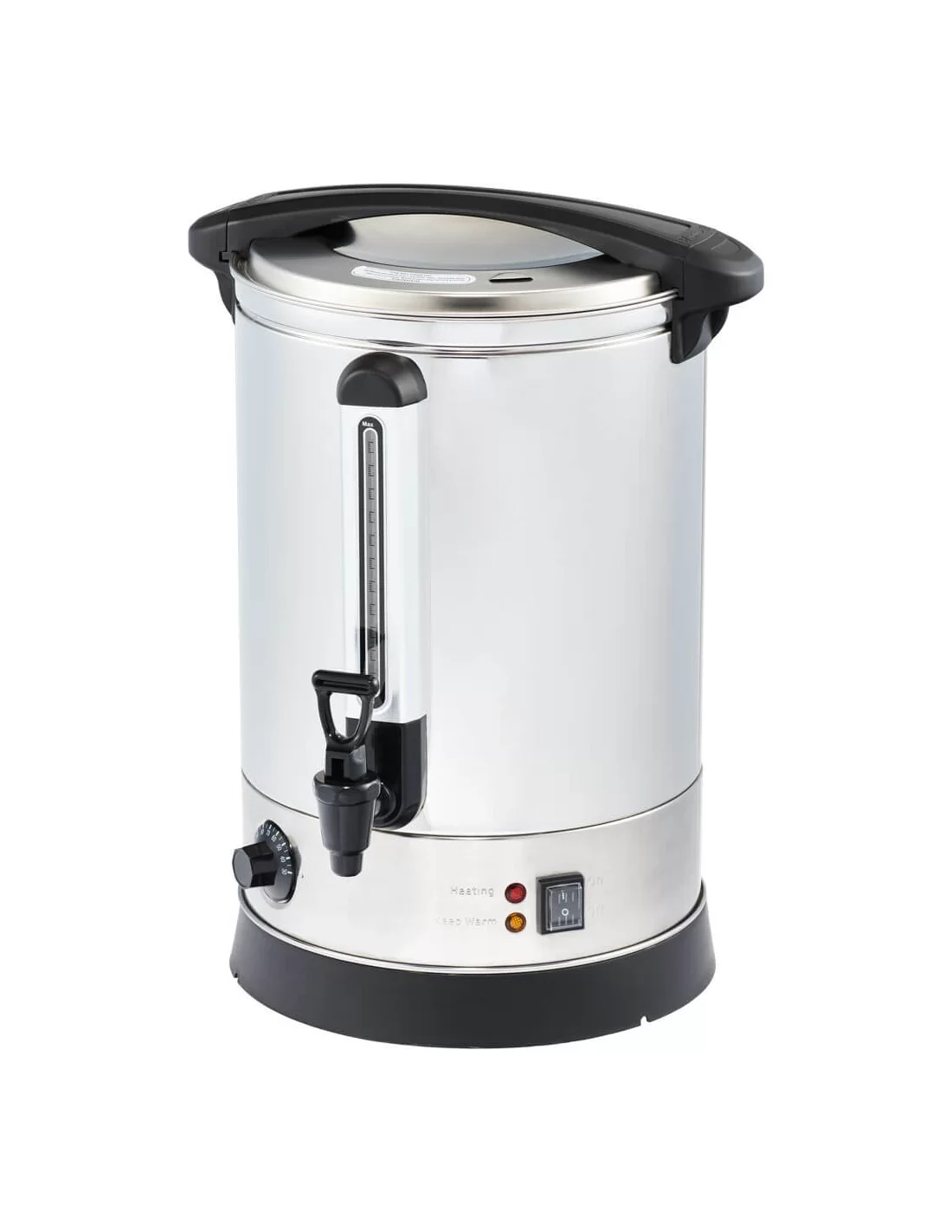 Електрокип'ятильник Gredil 10 л 751105 призначений для нагрівання води та подальшої підтримки її заданої температури. Це професійний електрокип'ятильник, який застосовується в закладах громадського харчування. В ньому можна зігріти до 10 літрів води. Діапазон регулювання термостату 30-110 °C. Індикатор рівня води, запобіжний термостат, вбудований обігрівач.