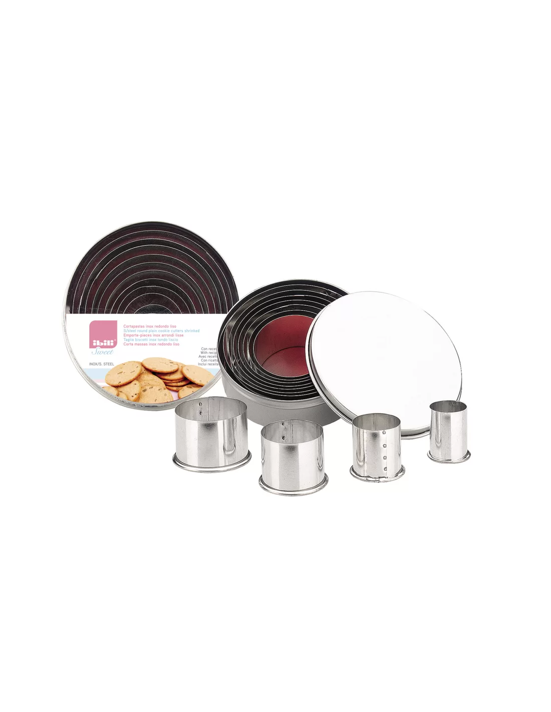 Набір круглих форм для вирізання тіста Ibili 703500 — це професійний комплект із 11 предметів, виготовлених із високоякісної нержавіючої сталі. Завдяки широкому вибору діаметрів, що включає розміри 2, 3, 4, 4.5, 5, 6, 6.5, 7, 8, 8.5 та 9 см, цей набір стає універсальним інструментом для створення ідеально рівних заготовок для випічки, десертів, міні-закусок чи гарнірів. Використання міцної нержавіючої сталі гарантує виняткову зносостійкість, стійкість до корозії та повну відповідність гігієнічним вимогам, що важливо для інтенсивної роботи. Гладка поверхня інструментів забезпечує легкість у вирізанні та запобігає прилипанню тіста, дозволяючи досягти бездоганної точності ліній. Для зручності організації простору всі форми компактно розміщуються у міцній металевій коробці, яка захищає інвентар від деформації та забезпечує надійне зберігання. Висока якість виконання від іспанського бренду Ibili робить цей набір надійним рішенням для тих, хто прагне професійного результату та естетичної досконалості у кожній страві.