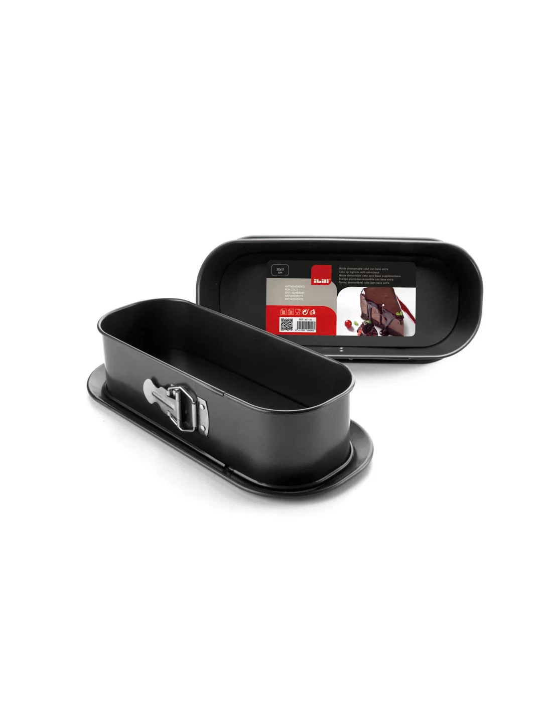 Роз'ємна прямокутна форма для кексу Ibili серії Moka з додатковим дном-тарілкою 827130 — це практичний набір «2 в 1» довжиною 30 см, розроблений для зручного випікання та стильної подачі кексів, хліба, терринів або бісквітів лоаф-форми. Комплект складається з рознімного прямокутного бортика та двох плоских основ: стандартної та спеціальної основи-тарілки з розширеними краями. Завдяки цій конструкції ви можете подавати готовий виріб одразу на стіл, просто знявши бічну частину, що виключає ризик пошкодження десерту при перекладанні. Виріб виготовлений із високоміцної листової сталі, яка гарантує рівномірний розподіл тепла та бездоганне пропікання по всій глибині. Якісне двошарове антипригарне покриття PPG Xylan не містить шкідливих домішок PFOA, забезпечуючи легке від’єднання випічки від стінок. Форма має розміри 30 x 11 см та висоту 8 см, вирізняється високою термостійкістю, надійністю замкового механізму та максимальною практичністю, оскільки всі її елементи придатні для миття в посудомийній машині.