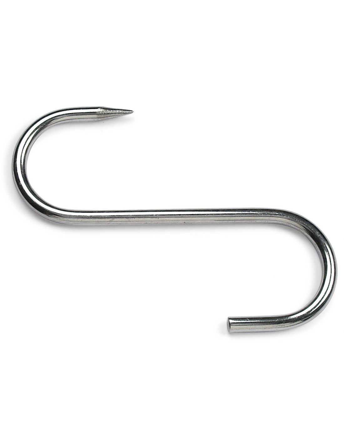 S-подібний гачок розміром 200 x 9 мм виготовлений із високоякісної нержавіючої сталі та призначений для підвішування м’яса, ковбасних виробів, дичини чи риби. Класична вигнута форма забезпечує зручність у використанні, дозволяючи швидко та надійно фіксувати продукцію на перекладинах у холодильних камерах, забійних цехах чи м’ясних крамницях. Матеріал не вступає в реакцію з продуктами, стійкий до корозії та відповідає всім санітарно-гігієнічним нормам. Гладка поверхня легко очищується та дезінфікується, що робить цей гачок практичним та довговічним інструментом для професійного використання.