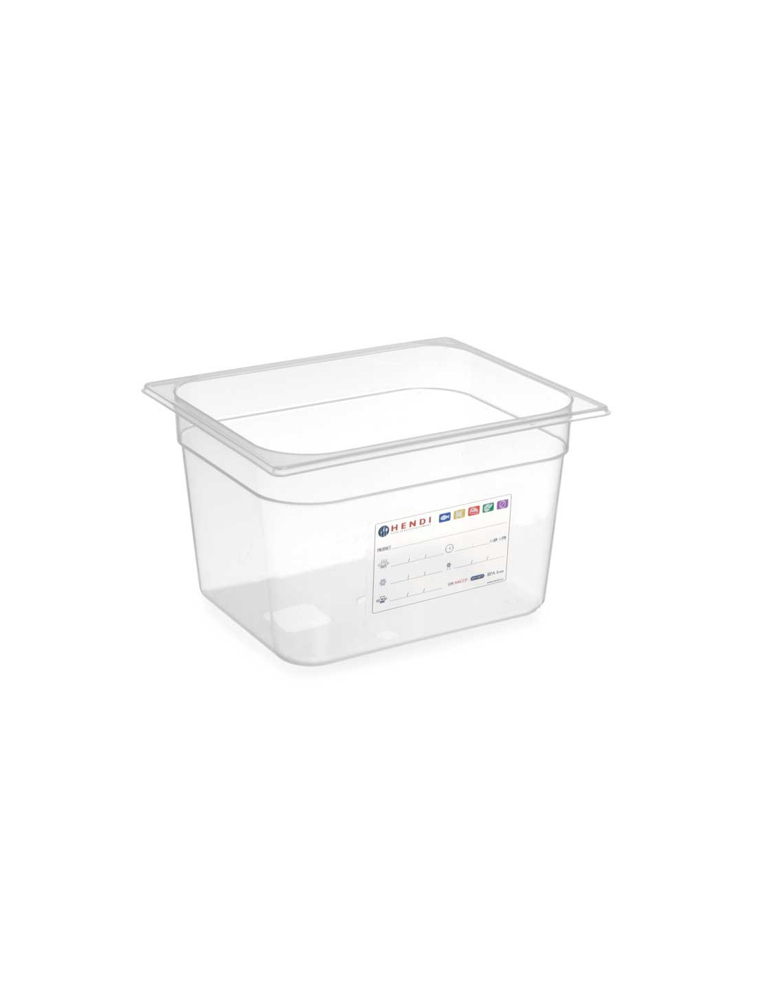 Гастроємність Hendi розміру GN 1/2 880166 об’ємом 9,5 літрів та глибиною 150 мм виготовлена з високоякісного прозорого поліпропілену, що дозволяє легко ідентифікувати вміст без відкривання кришки. Виріб відповідає стандартам HACCP та призначений для безпечного зберігання харчових продуктів на професійних кухнях, оскільки матеріал не вбирає запахи та смаки. Конструкція контейнера передбачає вплавлену в стінку етикетку для маркування, що полегшує контроль термінів придатності, а також мірну шкалу на боковій поверхні для точного визначення об’єму. Завдяки закругленим кутам ємність легко очищується, а можливість штабелювання забезпечує компактне зберігання. Виріб витримує температурний діапазон від -40°C до +80°C, що робить його придатним для використання в холодильних та морозильних камерах, а також дозволяє миття у посудомийній машині.