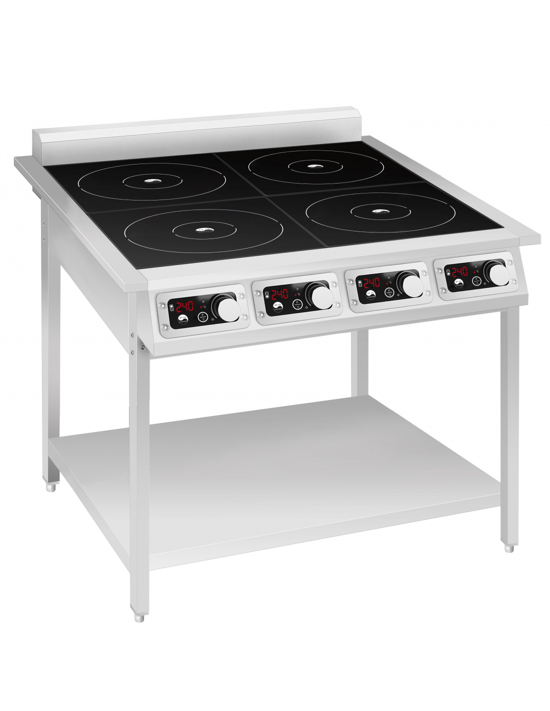 Професійна індукційна плита 700 серії Indokor IN3500-4PRO — це високопродуктивне підлогове обладнання, розроблене для інтенсивного використання на професійних кухнях із обмеженою площею. Плита оснащена чотирма незалежними зонами нагріву загальною потужністю 14 кВт (4 х 3,5 кВт), що забезпечує миттєве приготування страв у великих об’ємах. Корпус виконаний із нержавіючої сталі, а робоча поверхня — із міцної склокераміки. Сенсорно-механічне керування з LED-дисплеями дозволяє точно регулювати 9 рівнів потужності та 10 температурних режимів (від 60 до 240 °С). Апарат має вбудований захист від перегріву, датчики наявності посуду та знімні жирознімальні фільтри для зручного догляду. У комплект поставки входить стійка металева підставка з полицею. Важливо: обладнання працює від мережі 380 В, кабель живлення не входить у комплект.