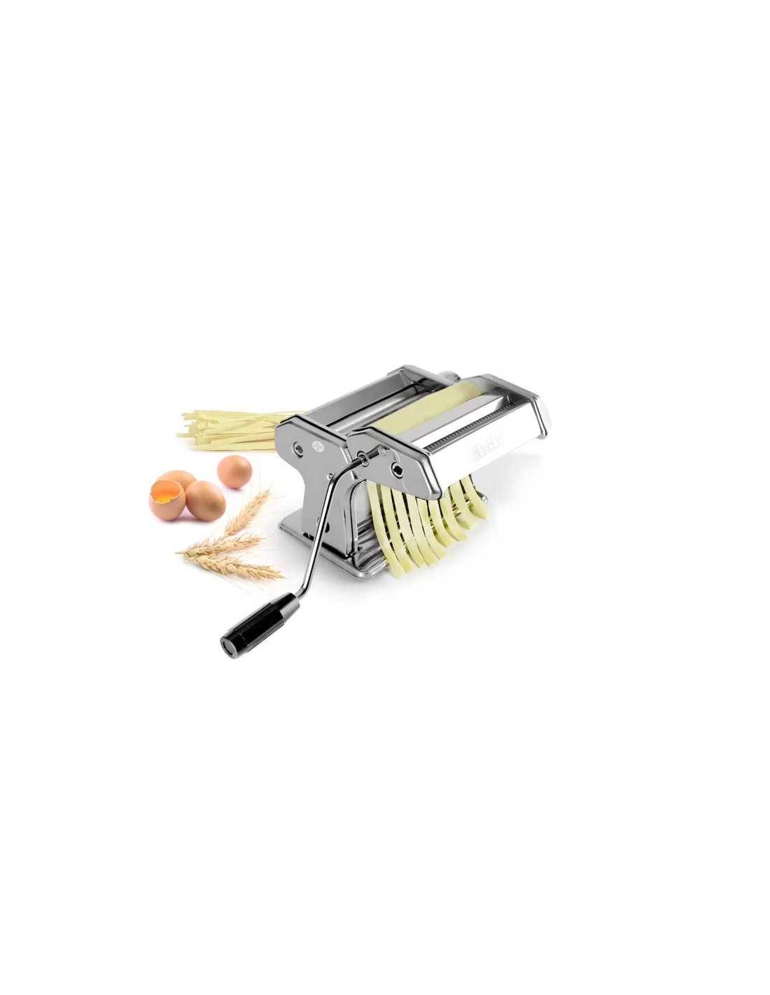Машинка для приготування свіжої пасти Ibili 773100 — це надійний кухонний інструмент, виготовлений із міцної хромованої сталі, що гарантує його довговічність та стійкість до механічних навантажень. Пристрій довжиною 17 см оснащений функцією регулювання розкатування, яка має 9 рівнів налаштування товщини (від 0,2 до 3 мм), що дозволяє готувати ідеальні листи тіста для будь-якого виду випічки. Модель має два вбудовані ріжучі ролики для швидкого приготування класичних спагеті або широкої локшини (тальятеле). Для максимальної зручності та стабільності під час роботи машинка комплектується спеціальною струбциною (затискачем) для надійної фіксації на краї столу. Цей пристрій від бренду Ibili відрізняється ергономічним дизайном, плавною роботою механізму та може бути доповнений насадкою для виготовлення равіолі.
