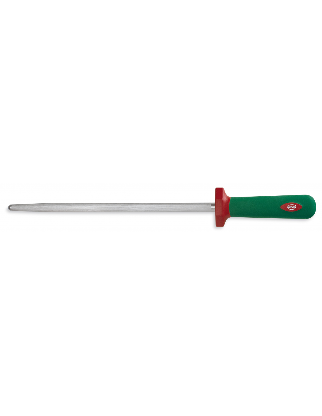 Професійний мусат (точило) із серії Premana Professional італійського бренду Sanelli призначений для вирівнювання ріжучої кромки та підтримки гостроти ножів з довгим лезом. Робочий стрижень має круглий перетин діаметром 13 мм та довжину 30 см, що забезпечує комфортну та ефективну роботу з середніми та великими ножами. Запатентоване ергономічне руків’я зеленого кольору виготовлене за технологією подвійного формування із нековзного матеріалу, що гарантує безпечне захоплення та значно зменшує втому руки при професійному використанні. Важливою особливістю є інтегрована антибактеріальна добавка Biomaster з іонами срібла, яка забезпечує постійний захист від мікроорганізмів, пригнічуючи їх ріст уже в перші хвилини. Конструкція без щілин у місцях з’єднання деталей виключає накопичення забруднень, а стійкість матеріалів до агресивних миючих засобів та температурних перепадів у діапазоні від -40°C до +150°C дозволяє стерилізувати інструмент та мити його в посудомийній машині.