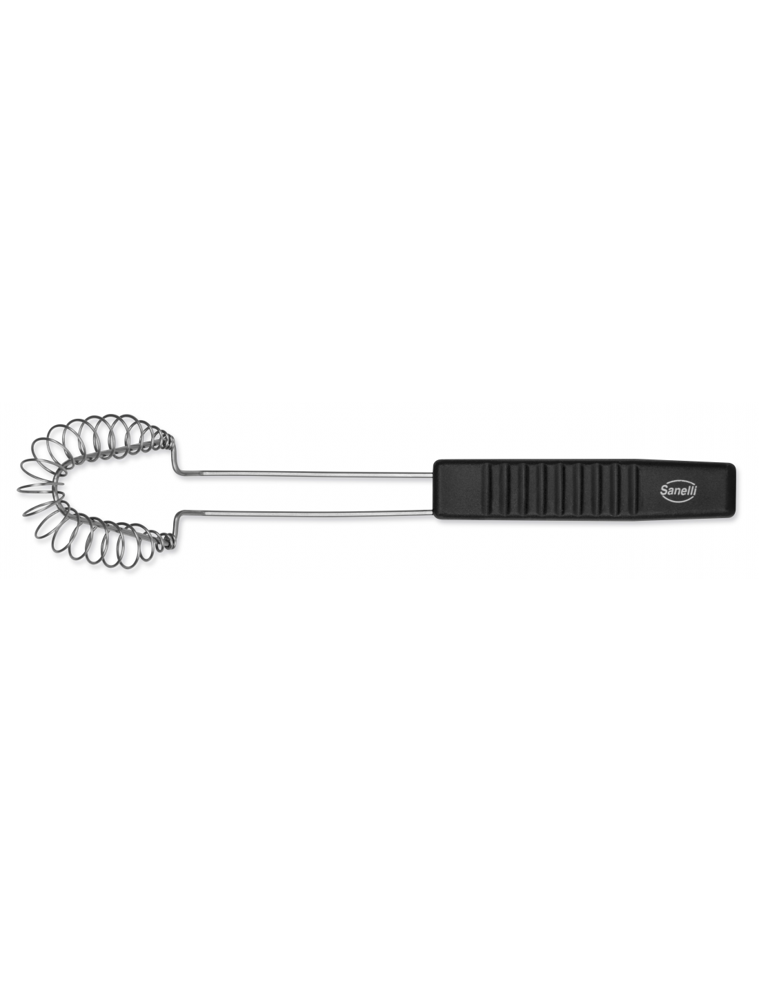 Професійний спіральний вінчик Sanelli 724212 із довжиною робочої частини 12 см спеціально розроблений для ефективного змішування соусів, підлив, яєць та желе в невеликих ємностях або сотейниках. Унікальна конструкція з кільцем, що закріплене під майже перпендикулярним кутом до руків’я та охоплене спіраллю, дозволяє легко досягати дна та кутів посуду, забезпечуючи однорідну консистенцію без грудочок. Робоча частина виготовлена з високоякісної нержавіючої сталі, що гарантує довговічність та гігієнічність інструмента при інтенсивному професійному використанні. Ергономічне чорне руків’я з міцного поліпропілену забезпечує надійне захоплення та комфортний контроль над рухами, роблячи цей інструмент незамінним помічником для приготування делікатних соусів та заправок.