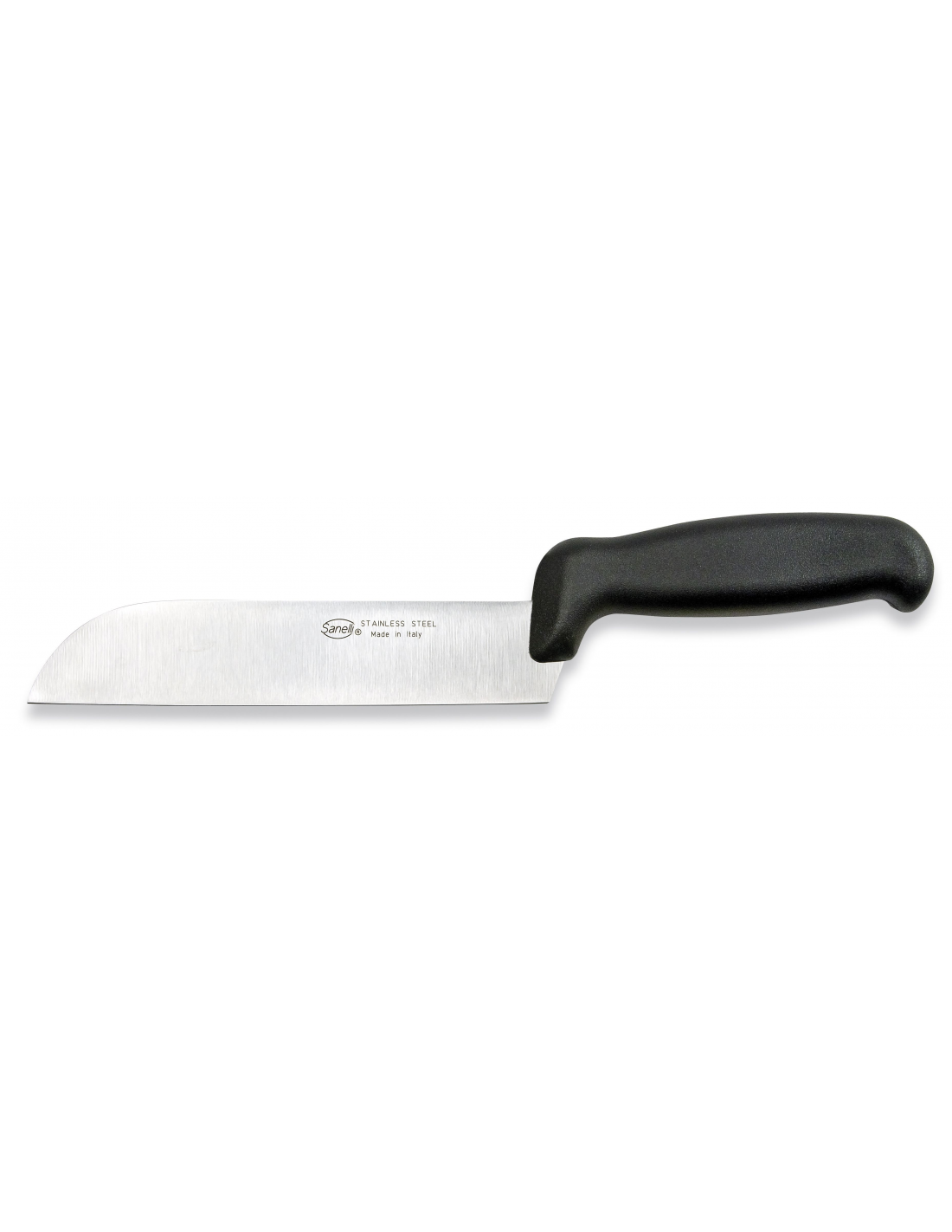 Професійний ніж для сиру Sanelli 443218 із серії Skin має лезо довжиною 18 см зі специфічною колінчастою (ступінчастою) формою. Такий дизайн дозволяє виконувати нарізання, тримаючи руків’я паралельно робочій поверхні, що забезпечує ідеально прямий зріз і запобігає кришенню сиру. Інструмент оптимально підходить для порціонування різних сортів сиру в умовах інтенсивної роботи ресторанів та професійних кухонь. Робоча частина виготовлена з високоякісної нержавіючої сталі Bonpertuis із твердістю 54–56 HRC, яка поєднує в собі міцність, гнучкість і здатність тривалий час зберігати гостроту. Головною перевагою серії Skin є інноваційне ергономічне руків’я з унікальною текстурованою поверхнею, яка гарантує надійне захоплення та повний контроль, запобігаючи ковзанню руки навіть у вологому середовищі. Матеріал руків’я повністю відповідає суворим гігієнічним нормам HACCP щодо контакту з харчовими продуктами. Виріб стійкий до професійної стерилізації та придатний для регулярного миття в посудомийній машині.