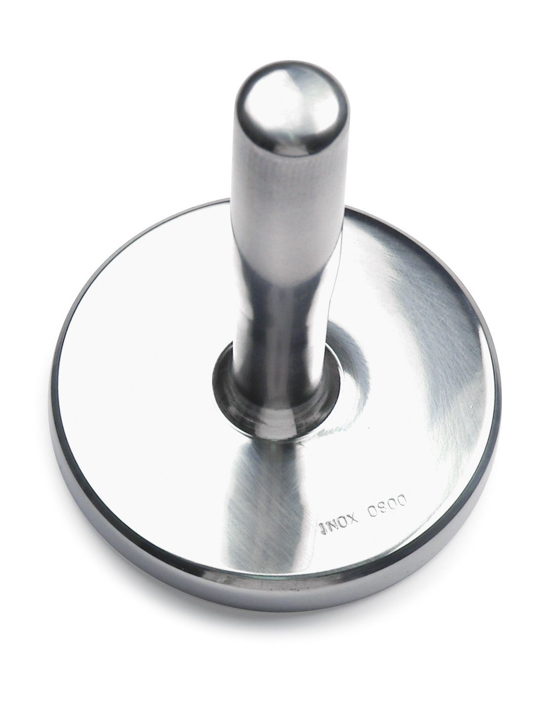 Професійний вертикальний відбивач для м’яса вагою 700 г повністю виготовлений із високоякісної нержавіючої сталі. Завдяки широкій плоскій основі та ергономічному верхньому руків’ю, інструмент дозволяє швидко та рівномірно вирівнювати товщину стейків, ескалопів чи філе, зберігаючи цілісність волокон та надаючи заготовці ідеальної форми для подальшого приготування. Масивна конструкція забезпечує необхідний тиск при мінімальних зусиллях, а суцільнометалеве виконання гарантує бездоганну гігієнічність, стійкість до корозії та легкість у санітарній обробці. Це надійне рішення для професійних кухонь, де цінують швидкість роботи та естетичний вигляд м’ясних страв.
