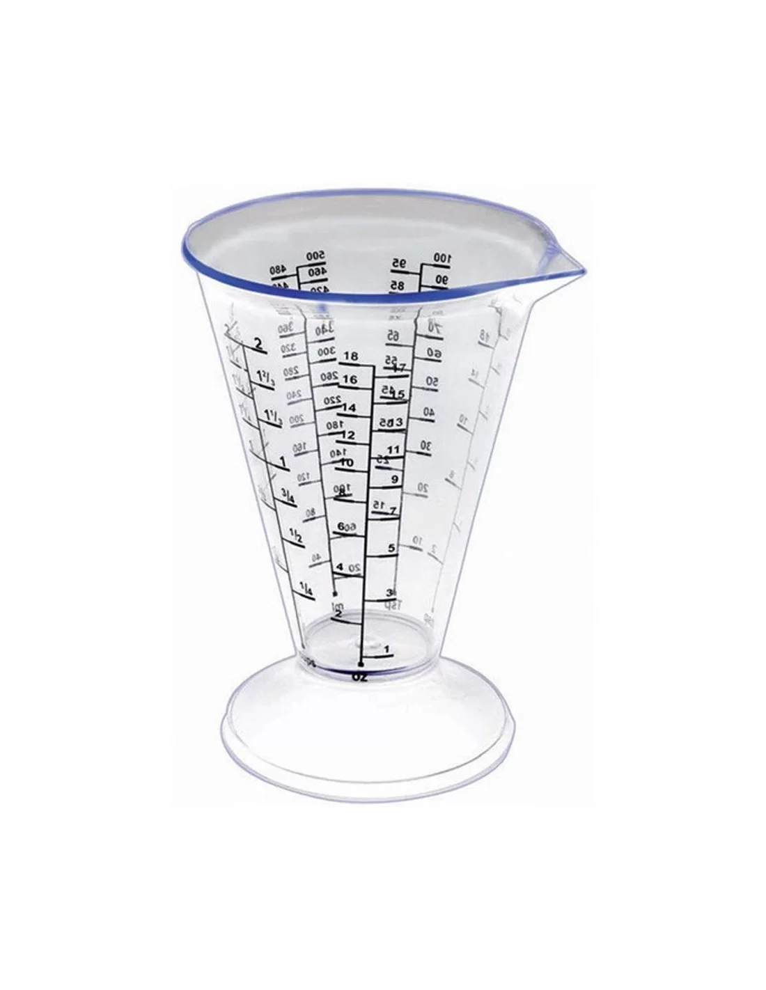Мірна склянка Ibili 500 мл (конічна) — це практичний кухонний інструмент для точного вимірювання широкого спектра інгредієнтів. Виготовлена з міцного прозорого пластику, склянка має ергономічну конічну форму зі стійкою основою та носиком для акуратного переливання рідин. На корпусі нанесені чіткі вимірювальні шкали для води (ml), борошна, цукру, рису, а також унцій (oz), пінта та чашок (cups), що робить її універсальною для будь-яких рецептів. Завдяки продуманому дизайну, вона забезпечує високу точність дозування. Для збереження тривалої прозорості та чіткості друкованих шкал рекомендується ручне миття в теплій мильній воді.