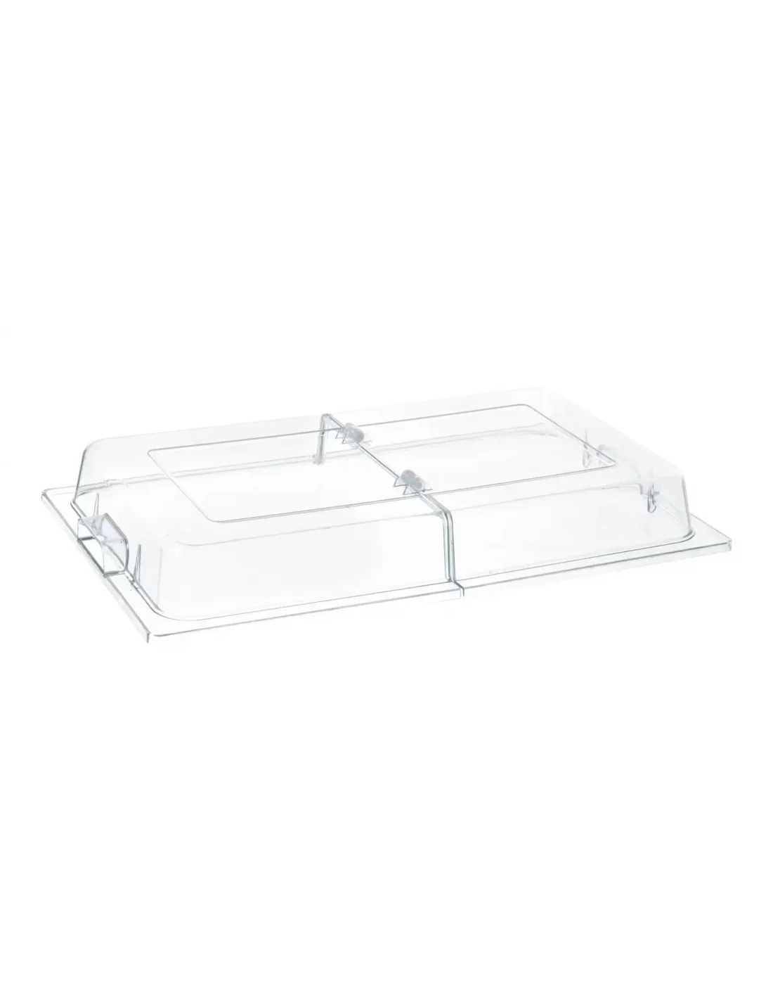 Відкидна прозора кришка Hendi 427415 GN 1/1 виготовлена з високоякісного полікарбонату, що забезпечує їй відмінну прозорість, міцність та високу стійкість до механічних пошкоджень. Модель спеціально розроблена для професійного сервірування страв на шведських столах, фуршетах та у закладах громадського харчування, дозволяючи вигідно продемонструвати асортимент продуктів та одночасно захистити їх від зовнішніх забруднень і завітрювання. Завдяки зручній відкидній конструкції гості можуть легко отримати доступ до вмісту ємності, не знімаючи кришку повністю. Матеріал виробу не вступає в реакцію з продуктами харчування, проте виріб не придатний для миття у посудомийній машині та потребує ручного догляду для збереження ідеальної прозорості поверхні.