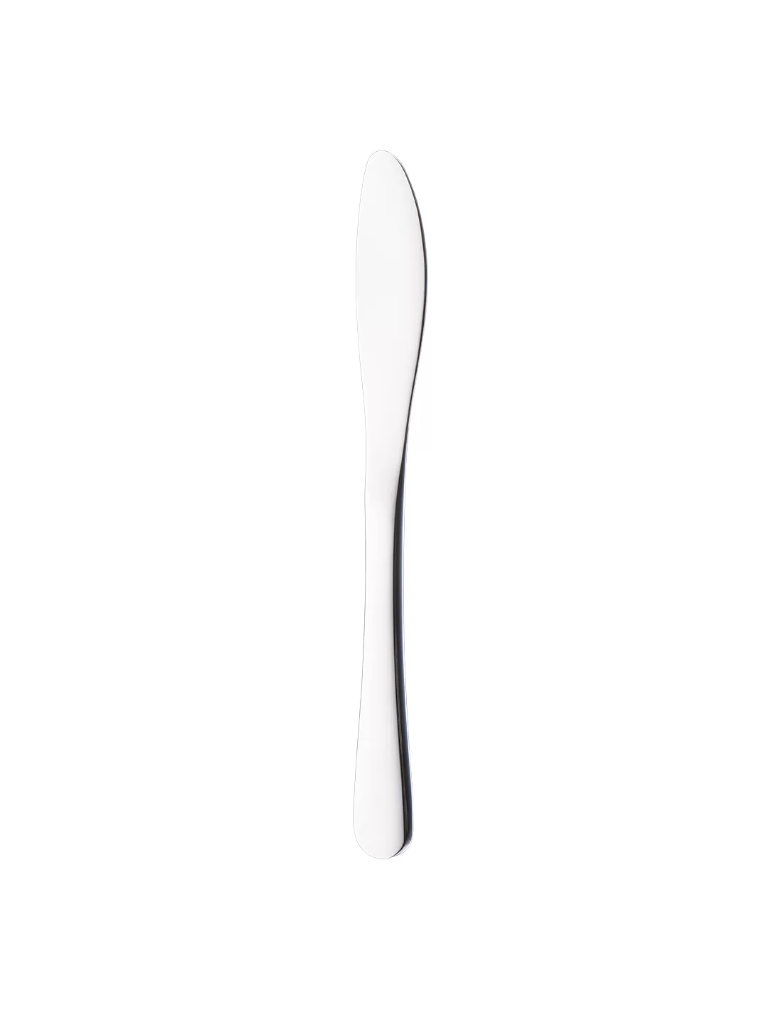 Столовий ніж Stalgast Дошкільний 358180 — це спеціальний столовий прибор, розроблений для дітей з метою безпечного та комфортного споживання їжі у дитячих садках та школах. Ніж має довжину 171 мм та характерну товщину близько 5 мм, а його лезо не має гострої ріжучої кромки, оскільки призначене лише для безпечного розрізання та розділення м'яких страв. Прибор виготовлений із нержавіючої сталі 18/0, що робить його гіпоалергенним (рекомендовано для алергіків, чутливих до нікелю), міцним та придатним для частого миття у посудомийній машині.