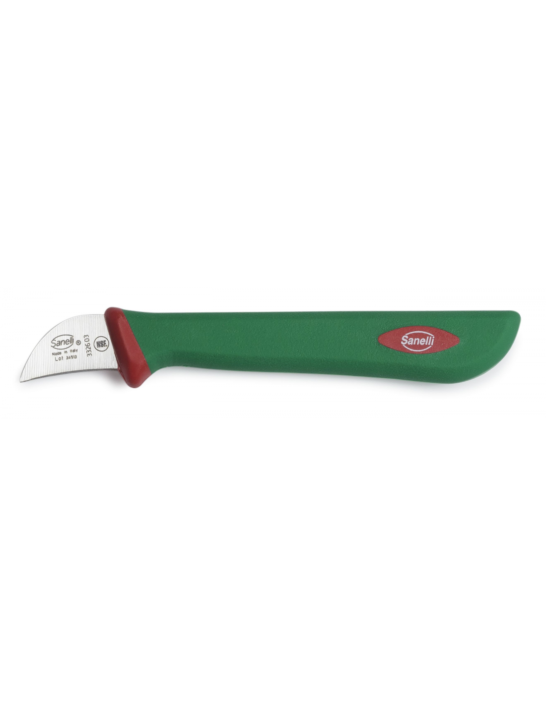 Профессиональный нож для каштанов из серии Premana Professional от итальянского бренда Sanelli оснащен коротким изогнутым лезвием длиной 3 см. Этот специализированный инструмент имеет заостренное лезвие, идеально приспособленное для надрезания и чистки каштанов. Лезвие изготовлено из высококачественной нержавеющей стали с твердостью 54–56 HRC, что обеспечивает высокую точность и длительное сохранение остроты. Запатентованная эргономичная рукоятка зеленого цвета выполнена по технологии двойного формования из нескользящего материала, что гарантирует надежный захват и безопасность во время работы. Интегрированная антибактериальная добавка Biomaster с ионами серебра обеспечивает постоянную гигиеническую защиту. Конструкция без зазоров в местах соединения гарантирует полное соответствие нормам пищевой безопасности, а устойчивость материалов к температурам от -40°C до +150°C позволяет проводить стерилизацию и мыть нож в посудомоечной машине.