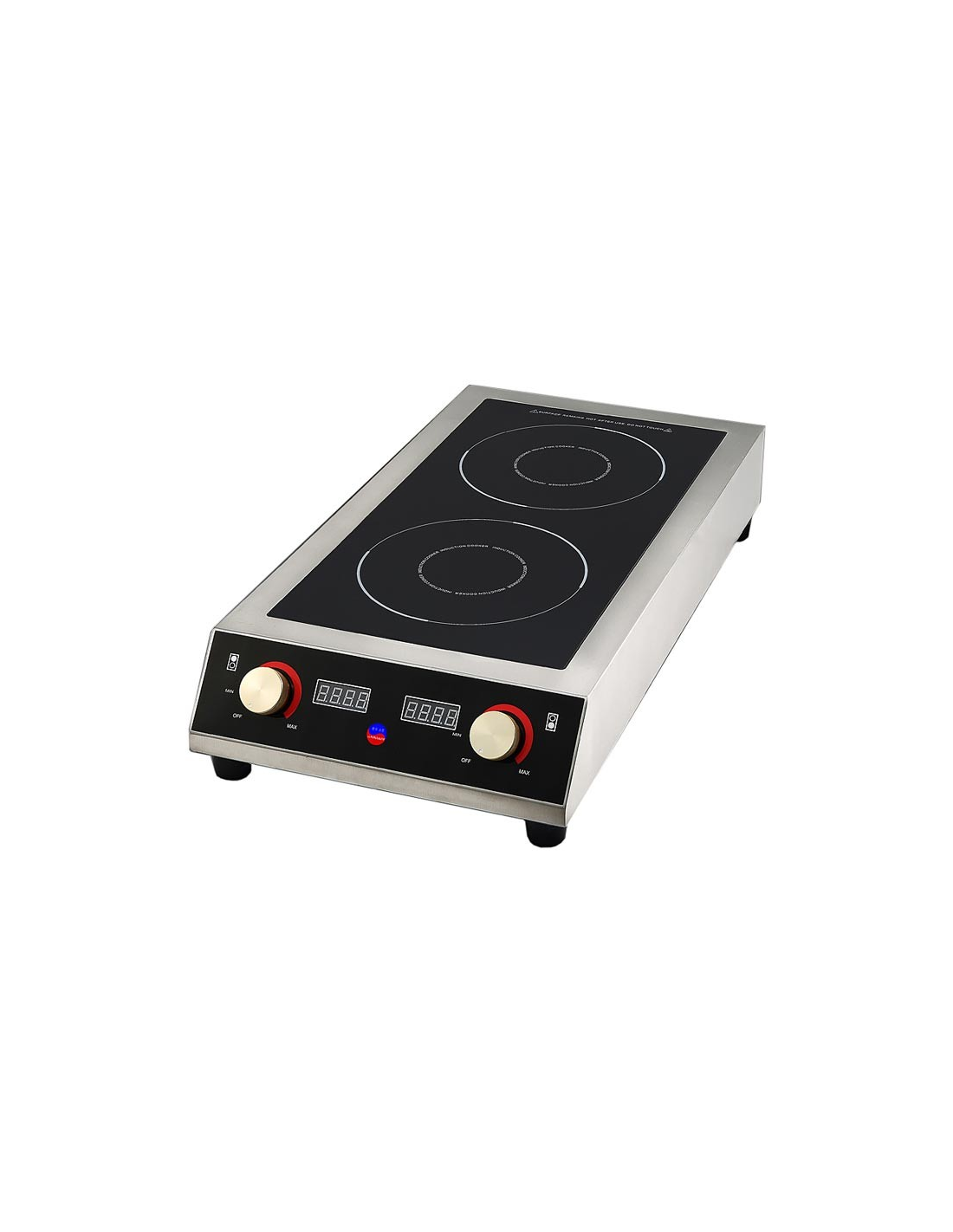 Профессиональная двойная индукционная плита Indokor IN7000 D — это мощное и надежное оборудование, предназначенное для интенсивной эксплуатации на профессиональных кухнях. Аппарат оснащен двумя независимыми зонами нагрева с суммарной мощностью 7 кВт (3,5 + 3,5 кВт), что позволяет одновременно готовить большие объемы блюд. Корпус выполнен из нержавеющей стали, а рабочая поверхность размером 310х560 мм — из высокопрочной стеклокерамики. Управление осуществляется с помощью удобных вариаторов с шагом 100 Вт (от 500 до 3500 Вт на каждую конфорку) и LED-дисплеев для контроля уровня мощности. Плита имеет двойную систему вентиляции, электронную защиту от перегрева и датчики наличия посуды. Для удобства обслуживания предусмотрены два съемных жиросъемных фильтра. Максимальная нагрузка составляет по 25 кг на каждую конфорку. Обратите внимание: оборудование не комплектуется штекером питания; для подключения необходима вилка номиналом от 25 до 32 А.