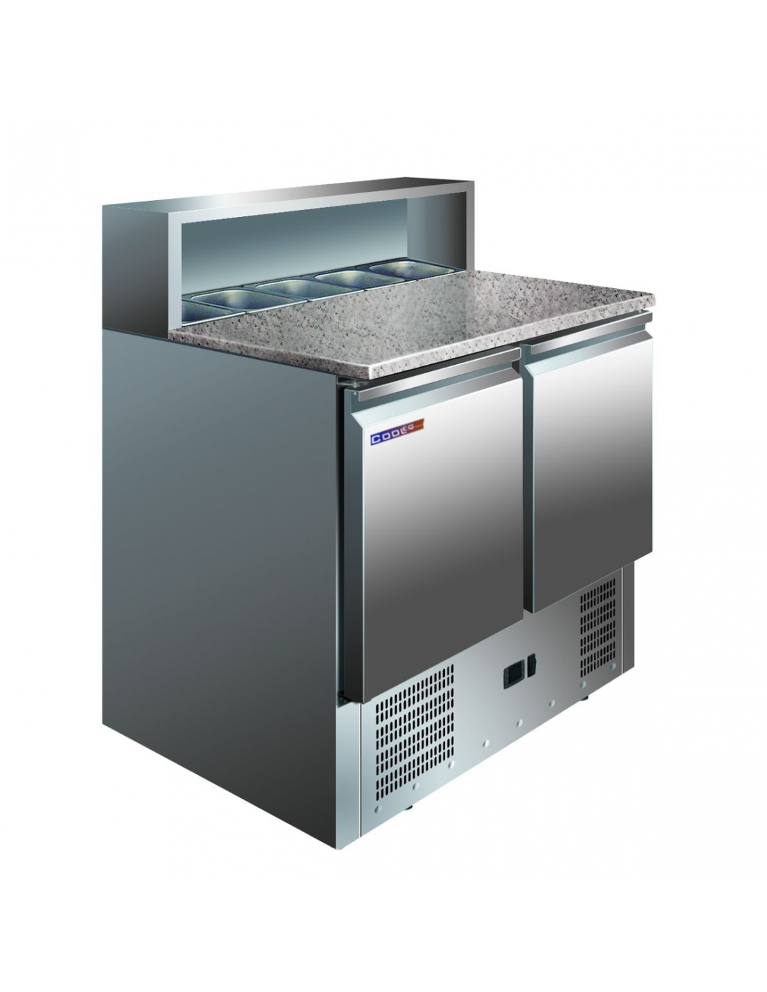 Стол холодильный для пиццы Cooleq PS900 — это специализированное профессиональное оборудование, предназначенное для максимально удобной организации рабочего места пиццайоло. Главной особенностью модели является прочная гранитная столешница размером 900х461 мм, которая идеально подходит для работы с тестом. Корпус стола полностью выполнен из нержавеющей стали и оснащен встроенным холодильным шкафом с двумя дверцами, общий полезный объем которого составляет 257 литров. Верхняя часть стола предусматривает вместимость для пяти гастроемкостей формата GN 1/6, что позволяет держать основные ингредиенты под рукой в охлажденном состоянии (гастроемкости не входят в комплект). Оборудование поддерживает стабильный температурный режим от +2 до +8 °С благодаря статической системе охлаждения и использованию энергоэффективного фреона R290 весом 65 грамм. Холодильный агрегат в данной модели расположен снизу.