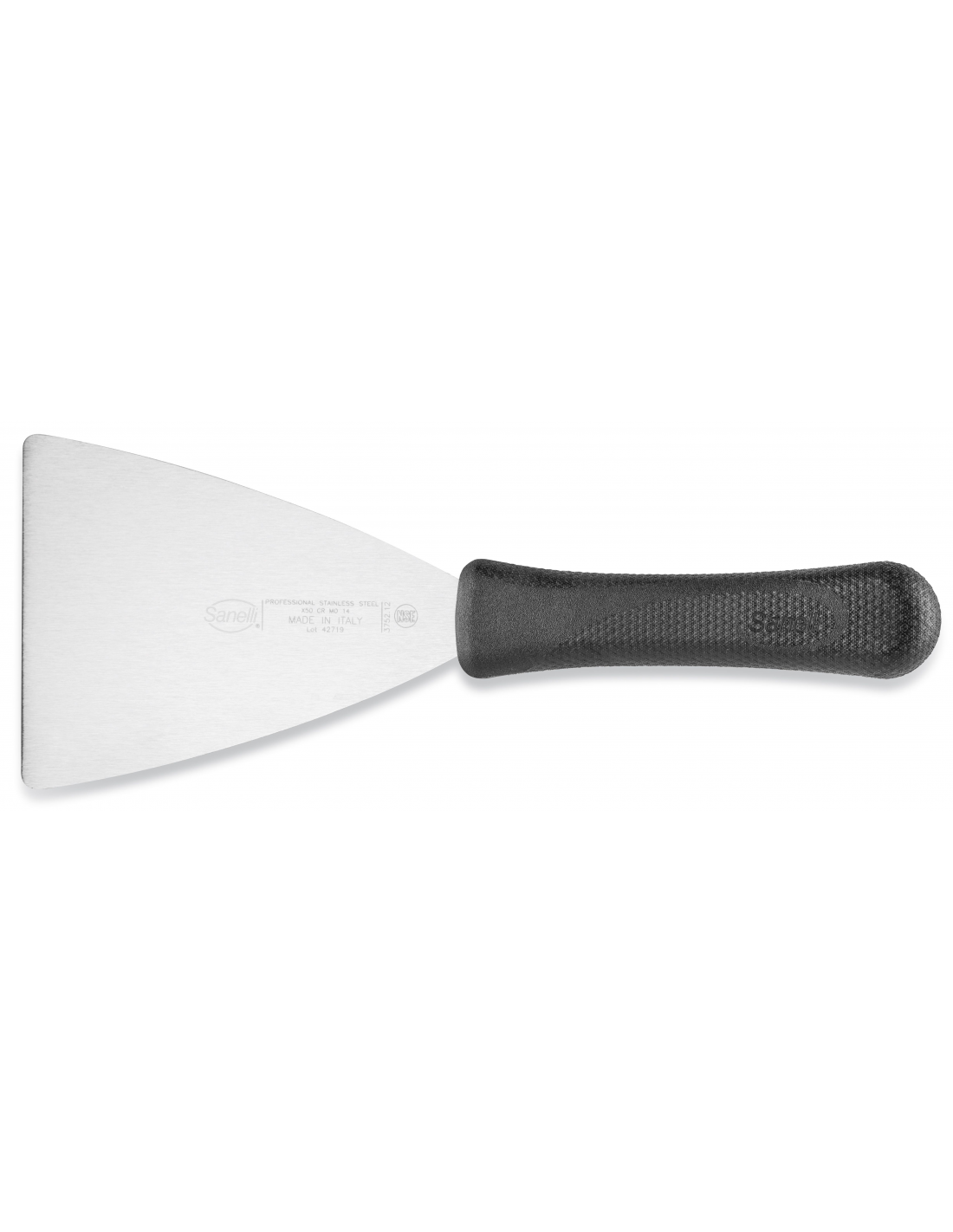 Профессиональная лопатка для пиццы Sanelli 375212 из серии Skin оснащена гибкой рабочей частью длиной 12 см. Этот инструмент специально разработан для порционирования пиццы и свежей пасты, а также он идеально подходит для работы на горячих поверхностях или плитах во время приготовления. Благодаря продуманной форме и прочности она обеспечивает легкое разделение блюд и надежное удержание ломтиков. Рабочая часть изготовлена из высококачественной нержавеющей стали, что гарантирует устойчивость к коррозии и длительный срок эксплуатации даже в условиях интенсивного профессионального использования. Характерной особенностью серии Skin является инновационная эргономичная рукоятка с уникальной текстурированной поверхностью, которая обеспечивает максимально надежный захват и комфорт, предотвращая скольжение руки. Материал рукоятки полностью соответствует строгим гигиеническим нормам HACCP для контакта с пищевыми продуктами. Изделие устойчиво к стерилизации и подходит для регулярного мытья в посудомоечной машине.