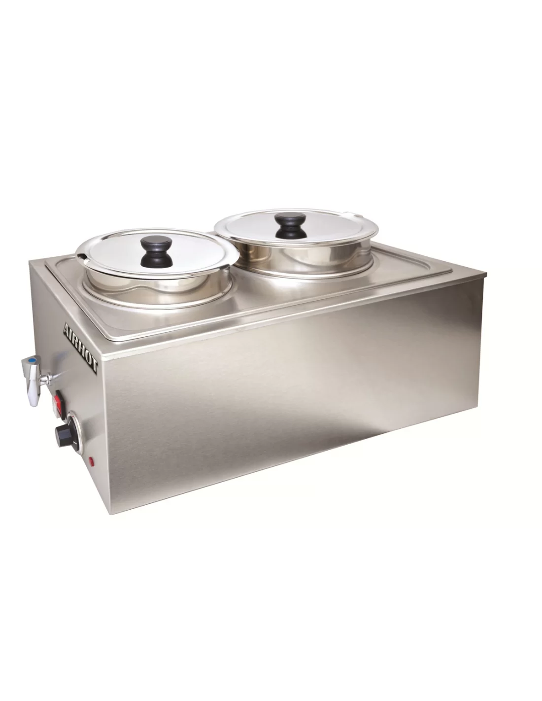 Водяной мармит Airhot SB-2 предназначен для поддержания готовых блюд в горячем состоянии, обеспечивая сохранение их вкусовых качеств на линиях раздачи и в горячих цехах заведений общественного питания. Модель укомплектована двумя емкостями объемом по 8 литров каждая, что в совокупности дает 16 литров полезного объема для одновременного хранения нескольких видов продуктов. Прочный корпус из нержавеющей стали гарантирует долговечность оборудования и легкость в ежедневном уходе. Аппарат работает в температурном режиме от +30 до +90 градусов Цельсия и предлагает пять уровней регулировки мощности для выбора наиболее подходящих условий хранения. Особенностью конструкции является наличие сливного крана для быстрого обслуживания и поддержания гигиены устройства.