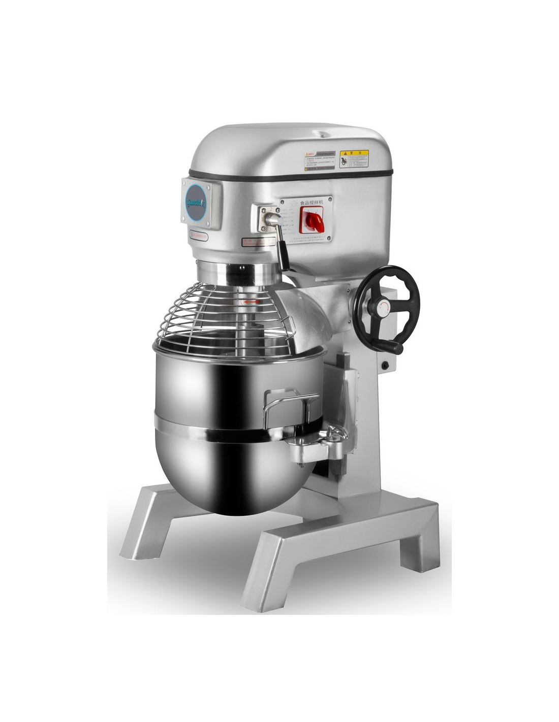 Планетарный миксер Gastromix B50C (380В) — это мощное профессиональное напольное оборудование с дежой объемом 50 литров, предназначенное для интенсивной эксплуатации в пекарнях, кондитерских цехах и на крупных кухнях заведений общественного питания. Аппарат является универсальным решением для замеса различных видов теста, включая бисквитное, дрожжевое, слоеное и заварное, а также для приготовления разнообразных соусов, муссов и пюре. Модель оснащена надежной электромеханической системой управления и ручным механизмом подъема дежи. Миксер имеет три фиксированные скорости вращения насадки (95, 170 и 326 об/мин), что позволяет подбирать оптимальный режим для каждой технологической операции. Прочный корпус выполнен из крашеного металла цвета серебро, а все рабочие элементы — съемная дежа, венчик, лопатка и крюк — изготовлены из высококачественной нержавеющей стали. Для безопасной работы предусмотрена защитная решетка, также выполненная из нержавеющей стали. Устройство мощностью 2,2 кВт работает от промышленной сети 380 В, обладает значительным весом 148 кг и габаритами 650x600x1200 мм, что гарантирует максимальную устойчивость во время нагрузок.
