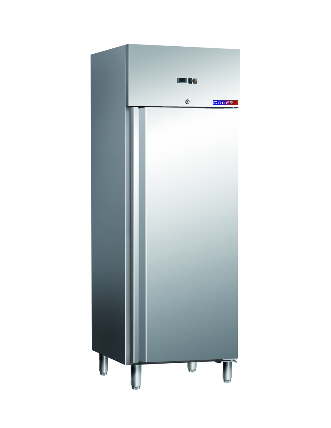 Морозильный шкаф Cooleq GN650BT представляет собой профессиональное низкотемпературное оборудование от китайского производителя, специально разработанное для длительного и надежного хранения продуктов питания. Весь корпус устройства выполнен из высококачественной нержавеющей стали, что обеспечивает прочность, долговечность и легкость в санитарной обработке. Модель оснащена одной глухой дверью со встроенным замком для безопасности и обладает общим объемом 685 литров. Внутреннее пространство укомплектовано тремя полками размером 534х648 мм, а наличие регулируемых ножек позволяет устойчиво установить оборудование на любой поверхности. Шкаф поддерживает стабильный температурный режим в пределах от -18 до -22 °С благодаря динамической системе охлаждения и использованию фреона R290 (128 г). Конструктивной особенностью является верхнее расположение холодильного агрегата, что упрощает обслуживание. Устройство мощностью 500 Вт питается от стандартной электросети 220 В.