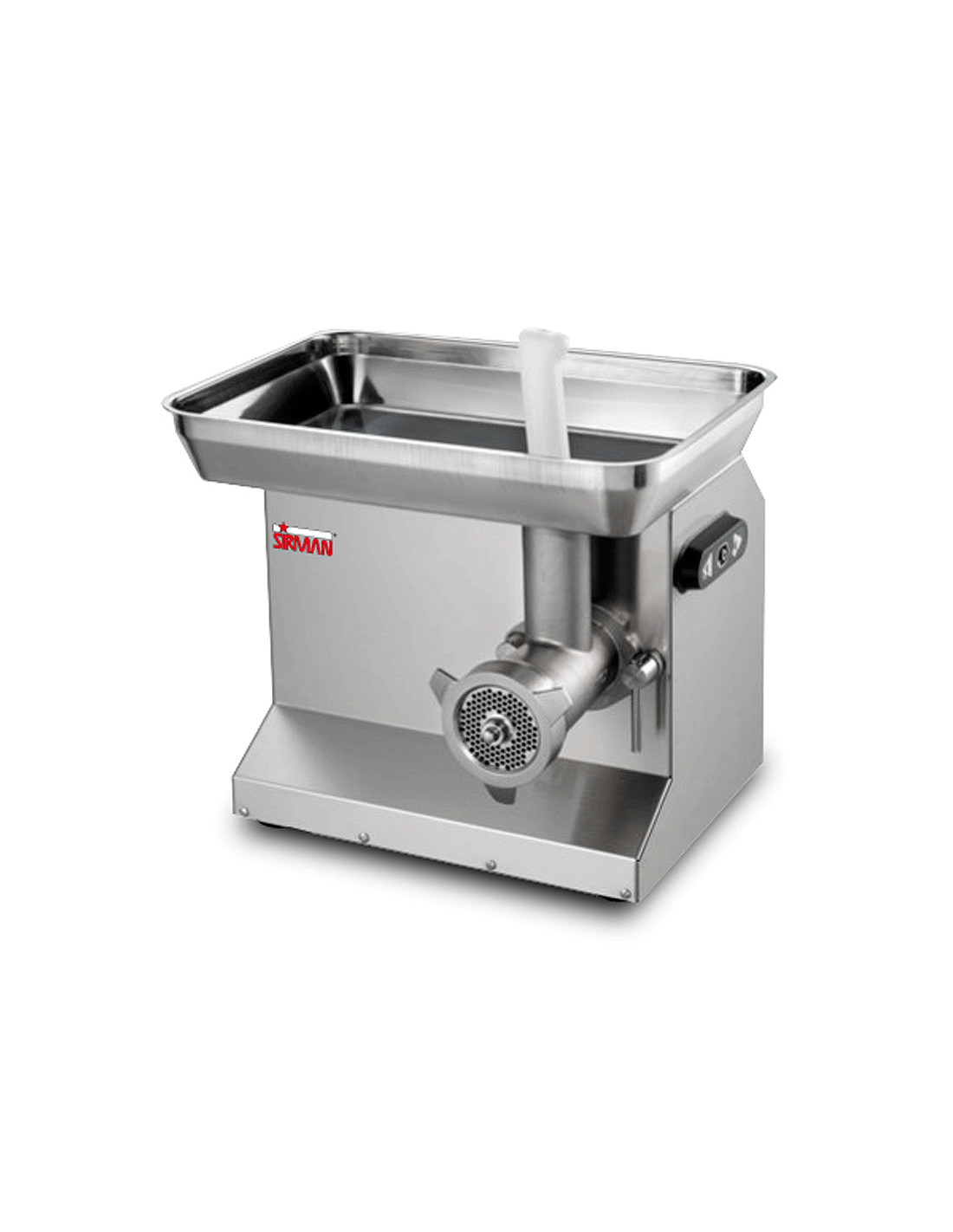 Профессиональная мясорубка Sirman TC-22 Colorado итальянского производства предназначена для качественного изготовления фарша на предприятиях общественного питания. Модель отличается высокой производительностью до 300 кг в час и оснащена мощным вентилируемым двигателем для длительной непрерывной работы. Корпус аппарата, а также горловина, шнек и режущий комплект полностью изготовлены из нержавеющей стали AISI 304, что гарантирует долговечность и гигиеничность. Особенностью данной модификации является режущий комплект «полный унгер», обеспечивающий двойное измельчение продукта за один проход. Надежность оборудования усилена редуктором с двойной системой защиты от жидкостей, погруженным в масляную ванну. Устройство имеет компактные габариты 500x440x445 мм и предназначено для подключения к трехфазной сети с напряжением 380 В.