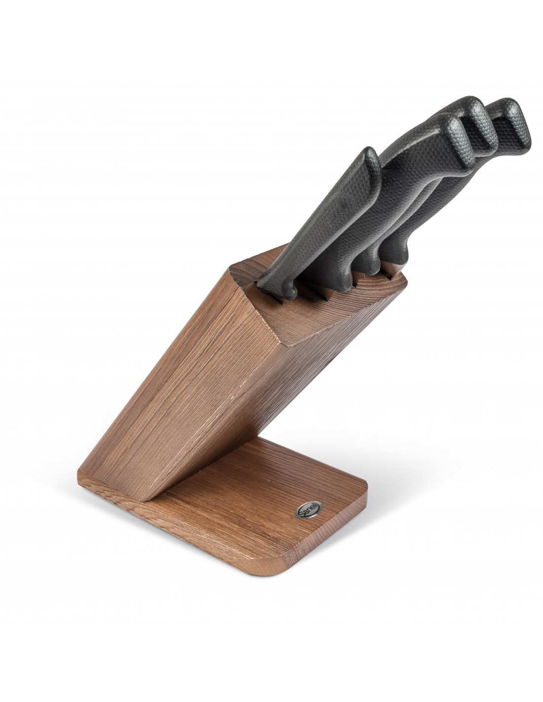 Профессиональный набор ножей Sanelli 927204 из серии Skin в цветовом исполнении Tabacco включает в себя элегантную наклонную подставку и четыре базовых инструмента для ежедневной работы: нож для жаркого (24 см), зубчатый нож для хлеба (24 см), универсальный кухонный нож (18 см) и нож для чистки (10 см). Каждый нож оснащен лезвием из высококачественной нержавеющей стали Bonpertuis с твердостью 54–56 HRC, что обеспечивает отличную режущую способность и длительное сохранение остроты. Главным преимуществом серии Skin является инновационная эргономичная рукоятка цвета «табак» с уникальной текстурированной поверхностью, которая гарантирует максимально надежный захват и полный контроль, предотвращая скольжение руки даже при интенсивном использовании. Изделия изготовлены с использованием антибактериальной технологии Biomaster с ионами серебра, что обеспечивает безупречную гигиену и защиту от микробов. Конструкция ножей полностью соответствует профессиональным стандартам, они устойчивы к стерилизации и подходят для регулярного мытья в посудомоечной машине, а наклонная подставка обеспечивает компактное хранение и удобный доступ к инвентарю.