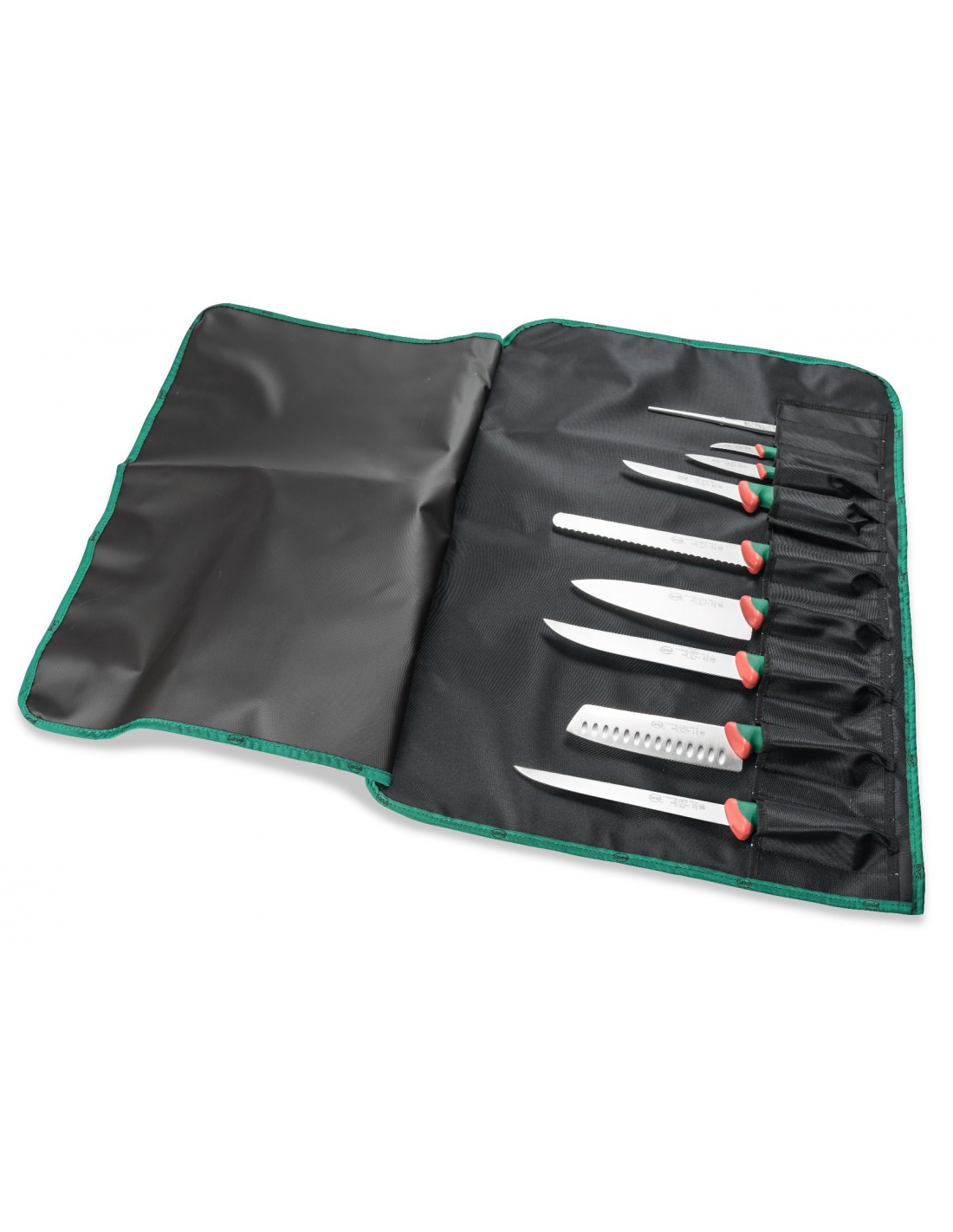 Набор кухонных ножей Sanelli Premana 9 шт. в сумке-свертке зеленый 983609