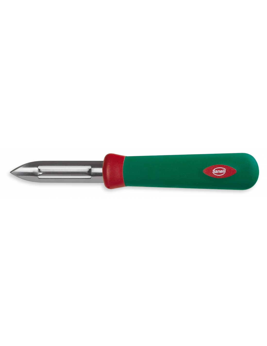 Профессиональная овощечистка из серии Premana Professional от итальянского бренда Sanelli оснащена лезвием с двойной режущей кромкой. Такая конструкция позволяет очищать овощи и фрукты движениями в обоих направлениях (вверх и вниз), что значительно ускоряет процесс подготовки продуктов. Инструмент универсален и одинаково удобен для использования как правой, так и левой рукой. Лезвие изготовлено из высококачественной нержавеющей стали, что гарантирует длительную остроту и устойчивость к коррозии. Запатентованная эргономичная рукоятка зеленого цвета выполнена по технологии двойного формования из нескользящего материала. Она содержит антибактериальную добавку Biomaster с ионами серебра для постоянной гигиенической защиты. Изделие выдерживает стерилизацию и температурные перепады от -40°C до +150°C, подходит для мытья в посудомоечной машине.