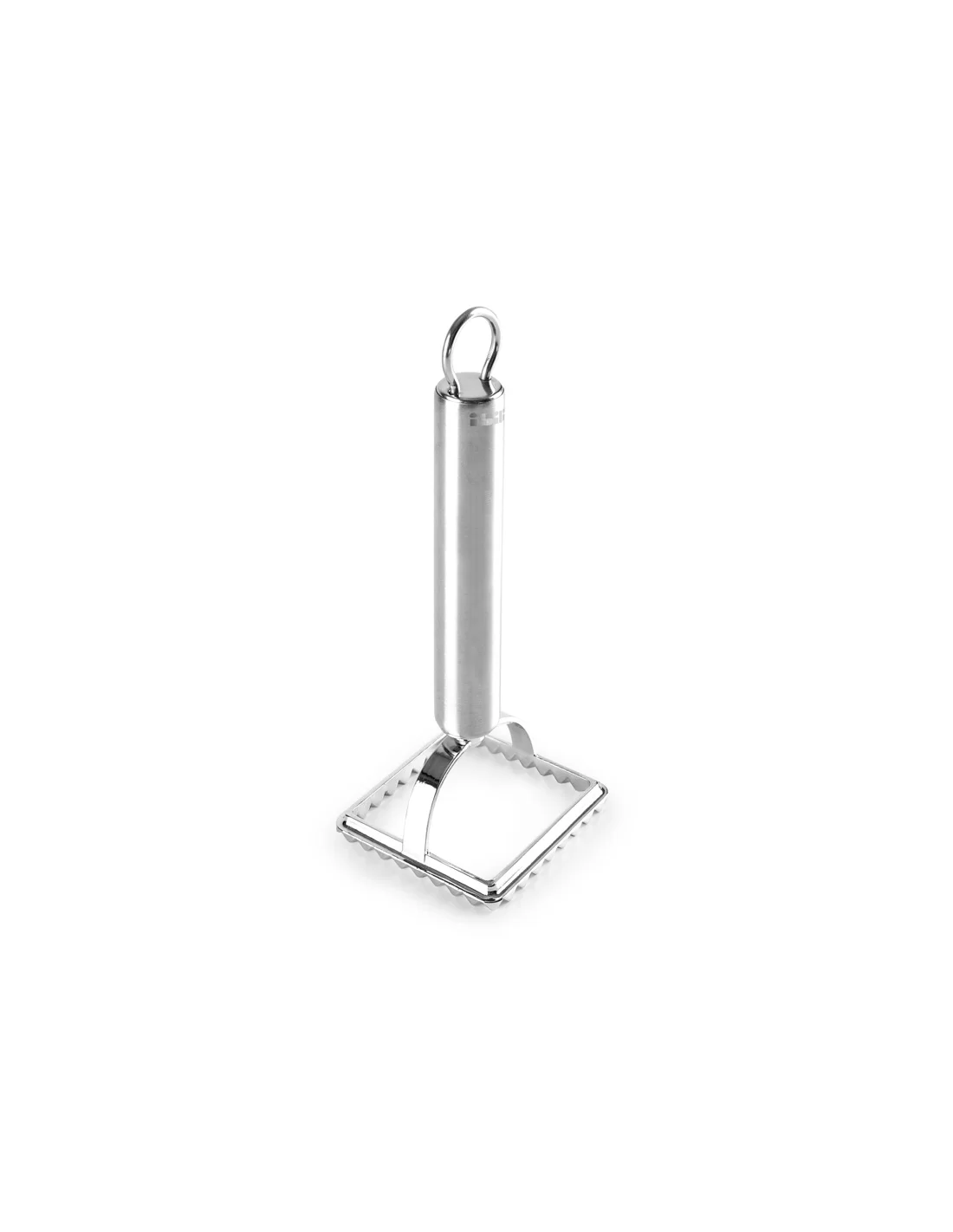 Квадратный штамп для равиоли Ibili 779400 — это профессиональный кухонный инструмент размером 6 x 6 см, специально разработанный для легкого и быстрого формирования идеально ровных макаронных изделий с начинкой. Изделие изготовлено из высококачественной нержавеющей стали 18%, что гарантирует его прочность, гигиеничность и устойчивость к коррозии даже при интенсивном использовании. Благодаря эргономичной деревянной ручке инструмент обеспечивает комфортный захват и позволяет одним нажатием надежно соединять края теста, одновременно создавая на них классический зигзагообразный декоративный узор. Данный девайс от бренда Ibili отличается продуманной конструкцией, подходит для мытья в посудомоечной машине и является незаменимым помощником для любителей итальянской кухни, обеспечивая профессиональный вид блюд в домашних условиях.