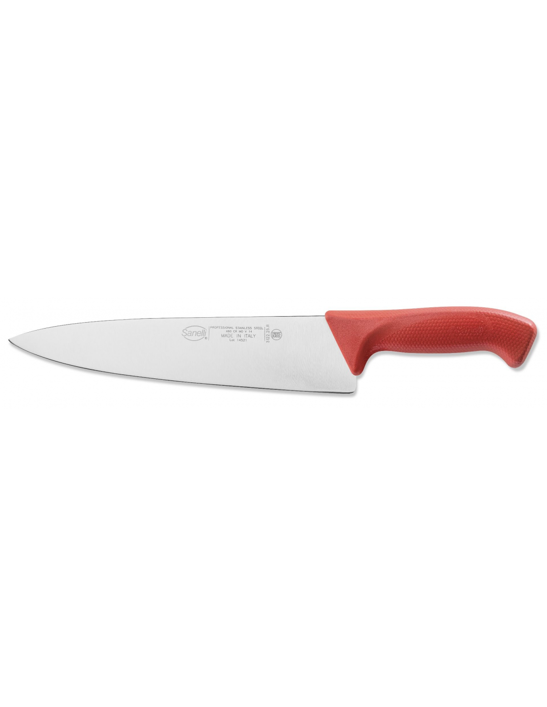 Профессиональный шеф-нож (поварской нож) Sanelli 312225.R из серии Skin оснащен жестким лезвием длиной 25 см. Это универсальный многофункциональный инструмент, разработанный для измельчения, нарезки и шинковки сырого мяса. Красный цвет рукоятки обеспечивает соответствие нормам HACCP, позволяя легко идентифицировать нож для работы именно с этой группой продуктов. Рабочая часть изготовлена из высококачественной нержавеющей стали Bonpertuis с твердостью 54–56 HRC, что гарантирует исключительную режущую способность, прочность и длительное сохранение остроты. Главным преимуществом серии Skin является инновационная эргономичная рукоятка с уникальной текстурированной поверхностью, которая обеспечивает максимально надежный захват и комфорт, предотвращая скольжение руки даже при интенсивном использовании в профессиональной среде. Материал рукоятки полностью соответствует строгим гигиеническим нормам для контакта с пищевыми продуктами. Изделие устойчиво к стерилизации и подходит для регулярного мытья в посудомоечной машине.