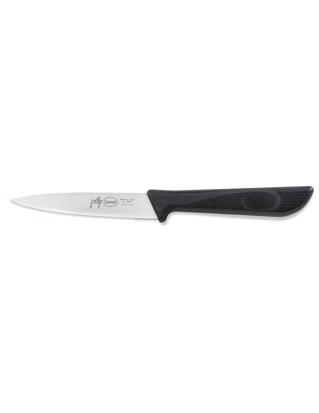 Профессиональный нож универсальный Sanelli 335211.N относится к серии Jolly — линейке практичных и маневренных инструментов для ежедневного использования. Модель оснащена лезвием длиной 11 см с микрозубчатой заточкой, которая обеспечивает легкое разрезание и длительный срок службы без необходимости частого подтачивания. Лезвие изготовлено из нержавеющей стали AISI 420C, специально разработанной для высокой коррозийной стойкости и надежности в работе. Эргономичная черная рукоятка из полипропилена имеет специальную антискользящую текстуру для уверенного захвата и безопасности. Нож соответствует профессиональным гигиеническим требованиям, устойчив к стерилизации и подходит для регулярного мытья в посудомоечной машине.