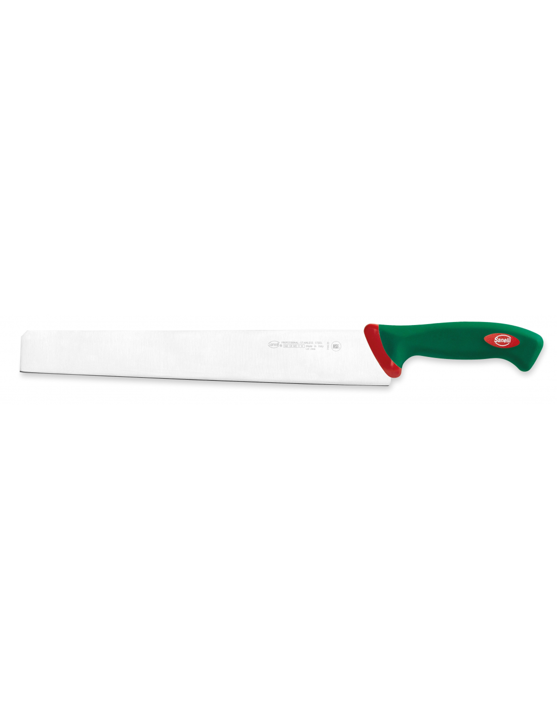 Профессиональный нож для нарезки деликатесов из серии Premana Professional от итальянского бренда Sanelli оснащен жестким лезвием длиной 33 см. Этот инструмент специально разработан для работы с выдержанными колбасными изделиями и сырами, а также широко используется в кондитерском искусстве, в частности для профессиональной резки шоколада. Лезвие изготовлено из высококачественной нержавеющей стали с твердостью 54–56 HRC, что обеспечивает колоссальную силу реза и длительное сохранение остроты. Специально разработанная выпуклая форма лезвия гарантирует надежную опору при выполнении сложных операций. Запатентованная эргономичная рукоятка зеленого цвета выполнена по технологии двойного формования из нескользящего материала, что обеспечивает уверенный захват и существенно снижает усталость руки. Интегрированная антибактериальная добавка Biomaster с ионами серебра обеспечивает постоянную гигиеническую защиту. Конструкция без зазоров в местах соединения металла и пластика гарантирует полное соответствие нормам пищевой безопасности, а устойчивость материалов к температурам от -40°C до +150°C позволяет проводить стерилизацию и мыть нож в посудомоечной машине.
