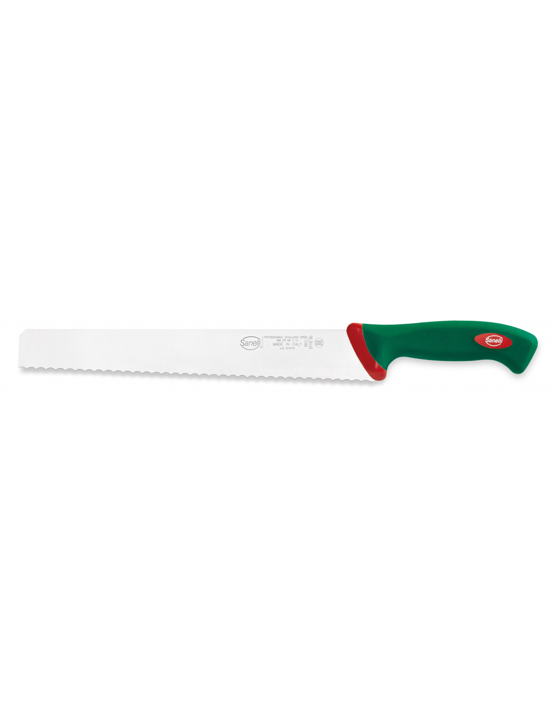 Профессиональный серрейторный нож для шоколада из серии Premana Professional от итальянского бренда Sanelli оснащен жестким зубчатым лезвием длиной 30 см. Этот инструмент специально разработан для эффективной и точной резки крупных блоков шоколада, требующих значительного усилия прижима и стабильности полотна. Лезвие изготовлено из высококачественной нержавеющей стали с твердостью 54–56 HRC, что обеспечивает колоссальную силу реза, долговечность заточки и устойчивость к сколам. Специально разработанная выпуклая форма лезвия гарантирует надежную опору при работе с твердыми массами. Запатентованная эргономичная рукоятка зеленого цвета выполнена по технологии двойного формования из нескользящего материала, что обеспечивает уверенный захват и существенно снижает усталость руки при профессиональном использовании. Интегрированная антибактериальная добавка Biomaster с ионами серебра обеспечивает постоянную гигиеническую защиту, подавляя рост микроорганизмов. Конструкция без зазоров в местах соединения металла и пластика гарантирует полное соответствие нормам пищевой безопасности, а устойчивость материалов к температурам от -40°C до +150°C позволяет проводить стерилизацию и мыть нож в посудомоечной машине.