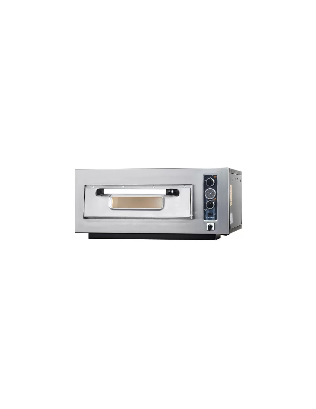 Электрическая однокамерная печь для пиццы Maksan PO-501T — это высокопроизводительное профессиональное оборудование, фронтальная часть которого выполнена из нержавеющей стали, а боковые и задняя панели — из прочной окрашенной стали. Рабочая камера размером 615х615х150 мм вмещает до 4 пицц диаметром 30 см, а использование огнеупорного кирпича для пода обеспечивает равномерный прогрев и дополнительную прочность конструкции. Модель оснащена термостатным управлением температурой в диапазоне от 0 до +400 °C и аналоговым термометром для максимально точного контроля процесса выпечки. Специальная изоляция печного блока повышает энергоэффективность, а дверца со смотровым окном в сочетании со светодиодной подсветкой камеры позволяют удобно мониторить готовность блюд без открытия двери и потери тепла. Простая в использовании панель управления со световыми индикаторами обеспечивает легкую настройку параметров, а продуманная эргономика корпуса делает процесс очистки печи быстрым и удобным, что является идеальным решением для ресторанов, кафе и пекарен.