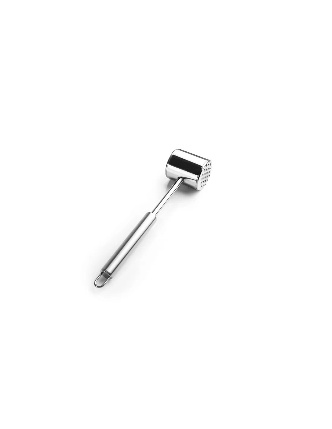 Молоток для мяса Ibili серии Intense 762047 — это массивный кухонный инструмент профессионального уровня, полностью изготовленный из высококачественной нержавеющей стали, что гарантирует его исключительную прочность и устойчивость к интенсивным нагрузкам. Изделие имеет общую длину 27 см и оснащено тяжелой рабочей частью диаметром 6 см, которая позволяет быстро и эффективно размягчать волокна мяса, делая его нежным без повреждения структуры продукта. Благодаря эргономичной цельнометаллической ручке с фирменным дизайном коллекции Intense, инструмент обеспечивает идеальный баланс веса и уверенный захват в руке. Данный девайс от бренда Ibili отличается высокой гигиеничностью, не впитывает запахи, легко моется и подходит для посудомоечной машины, что делает его надежным помощником для приготовления сочных стейков и отбивных.