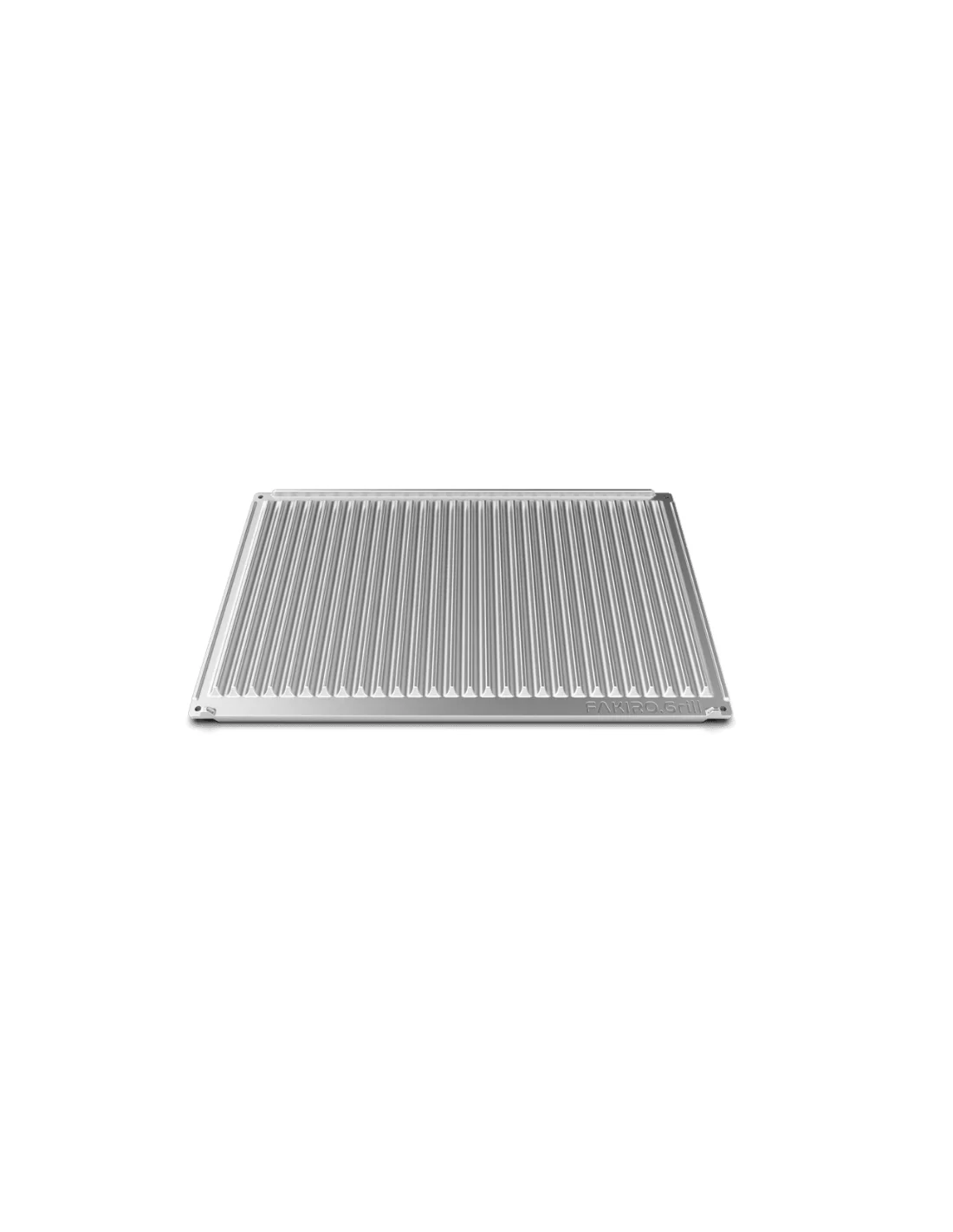 UNOXДвостороннє алюмінієве деко Fakiro Unox TG875 ідеально підходить для приготування в пароконвектоматах піци, фокаччі, випічки хлібобулочних та кондитерських виробів. Деко має 2 поверхні: гладку та ребристу. Алюмінієвий лист Fakiro товщиною 12 мм здатний акумулювати і легко і швидко передавати тепло їжі, розміщеній на його поверхню. З листом Fakiro час випічки значно скорочується: приготування свіжої піци займає всього 3 хвилини. Деко Fakiro дозволяє отримувати хліб та кондитерські вироби, що відповідають найвищим стандартам.