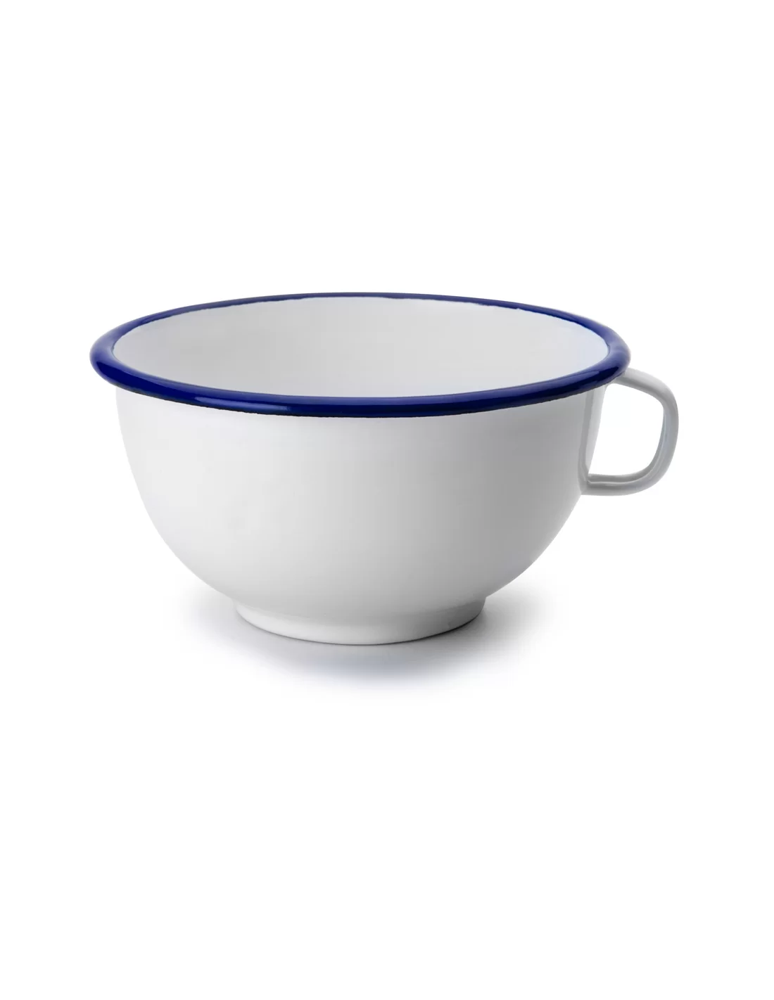 Глубокая чаша для сервировки с ручкой Ibili серии Blanca 903814 — это практичный и стильный элемент профессиональной посуды, изготовленный из высококачественной эмалированной стали. Благодаря наличию одной удобной ручки и глубокой форме, она идеально подходит для HoReCa: оригинальной подачи густых супов, рагу, каш или горячих напитков большого объема (например, какао с маршмэллоу). Изделие является результатом ручной работы: белоснежное покрытие и фирменный синий кантик наносятся мастерами вручную. Чаша имеет диаметр 14 см, отличается высокой прочностью, не впитывает запахи и пригодна для мытья в посудомоечной машине, сочетая профессиональную выносливость с классическим винтажным дизайном.
