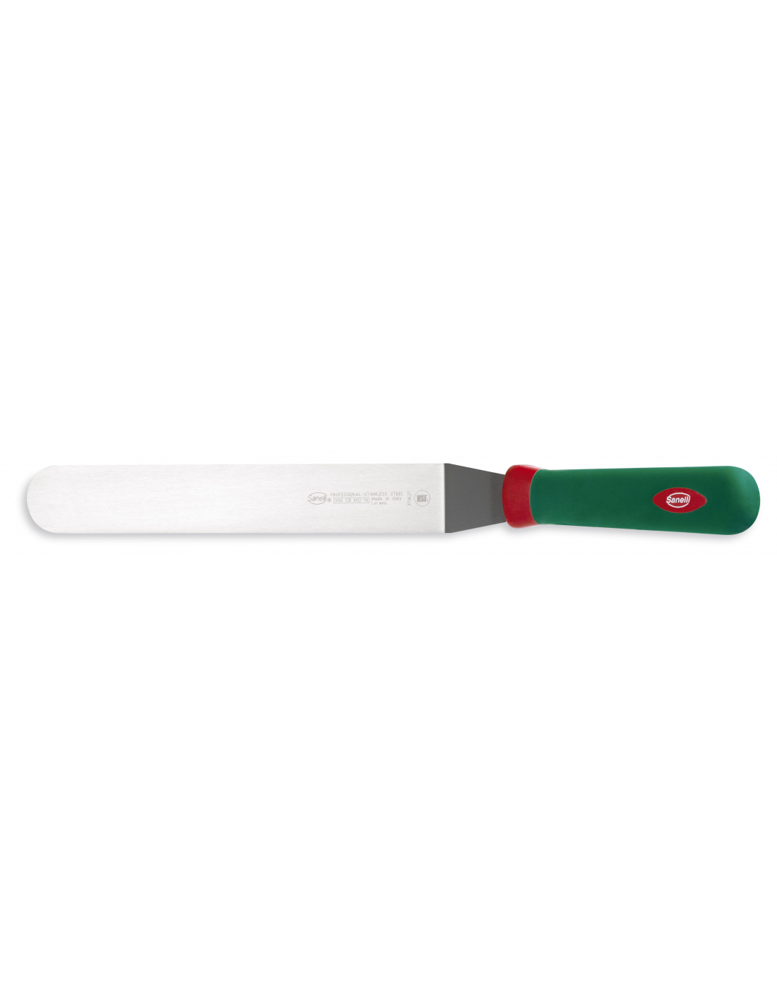 Профессиональная изогнутая лопатка из серии Premana Professional от итальянского бренда Sanelli оснащена гибким полотном длиной 27 см. Этот универсальный инструмент с изогнутым коленом идеально подходит для кондитерских работ (например, для разравнивания крема), а также для приготовления блюд на плите или гриле. Полотно изготовлено из высококачественной нержавеющей стали, что обеспечивает оптимальную гибкость, прочность и устойчивость к коррозии. Запатентованная эргономичная рукоятка зеленого цвета выполнена по технологии двойного формования из нескользящего материала, что гарантирует надежный захват и снижает усталость руки. Интегрированная антибактериальная добавка Biomaster с ионами серебра обеспечивает постоянную гигиеническую защиту. Изделие полностью соответствует нормам пищевой безопасности, выдерживает стерилизацию и подходит для мытья в посудомоечной машине.