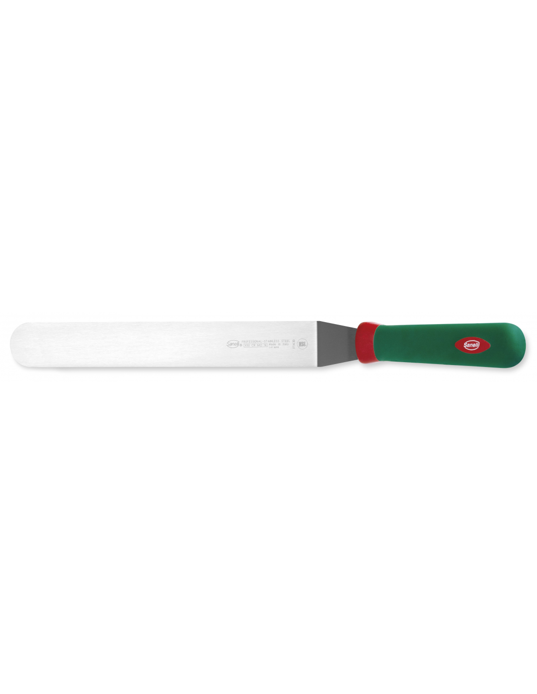Профессиональная изогнутая лопатка из серии Premana Professional от итальянского бренда Sanelli оснащена гибким полотном длиной 30 см. Этот универсальный инструмент с изогнутым коленом идеально подходит для кондитерских работ (например, для разравнивания крема), а также для приготовления блюд на плите или гриле. Полотно изготовлено из высококачественной нержавеющей стали, что обеспечивает оптимальную гибкость, прочность и устойчивость к коррозии. Запатентованная эргономичная рукоятка зеленого цвета выполнена по технологии двойного формования из нескользящего материала, что гарантирует надежный захват и снижает усталость руки. Интегрированная антибактериальная добавка Biomaster с ионами серебра обеспечивает постоянную гигиеническую защиту. Изделие полностью соответствует нормам пищевой безопасности, выдерживает стерилизацию и подходит для мытья в посудомоечной машине.