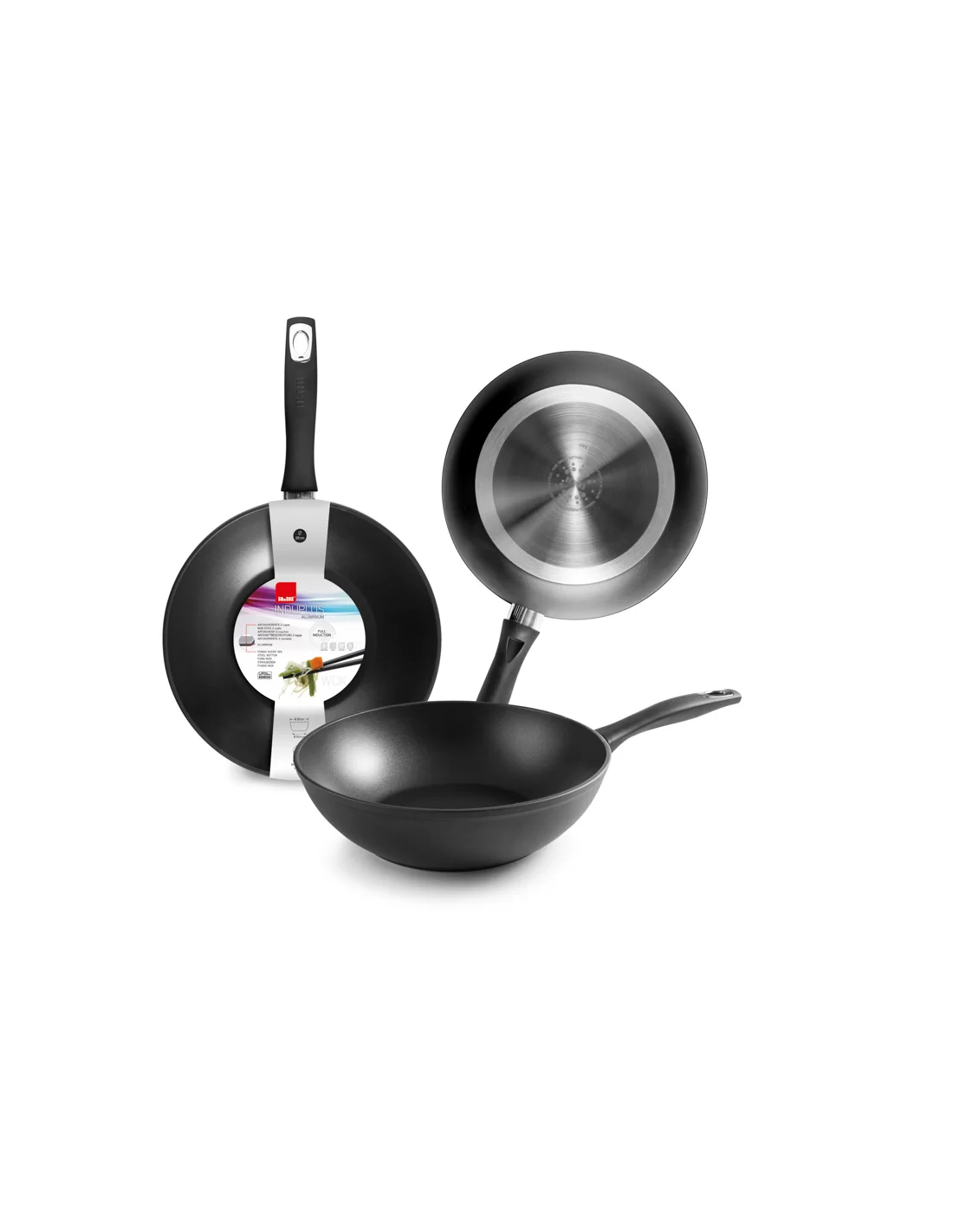 Вок Ibili серии New Induplus 400528N — профессиональный кухонный инструмент диаметром 28 см, изготовленный из прочного алюминия толщиной 5 мм, что обеспечивает устойчивость к деформациям и равномерное распределение тепла. Модель оснащена высококачественным двухслойным антипригарным покрытием без содержания PFOA и специальным дном Full Induction, гарантирующим высокую энергоэффективность на всех типах варочных поверхностей, включая индукционные. Благодаря высоким стенкам вок идеально подходит для быстрой обжарки, тушения и пассерования с минимальным количеством жира, а эргономичная ручка из бакелита с покрытием Soft Touch не нагревается, обеспечивая комфорт и безопасность при ежедневном использовании.