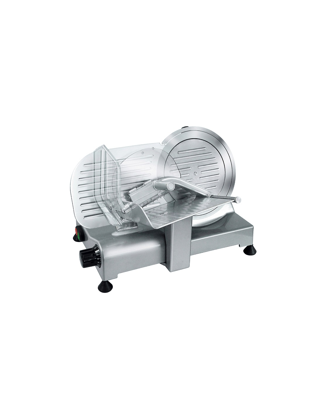 Профессиональный полуавтоматический слайсер Beckers ES 220 итальянского производства предназначен для быстрой и равномерной нарезки гастрономических продуктов, таких как колбасные изделия, твердые сыры и копчености. Компактная настольная модель идеально подходит для использования в ресторанах, супермаркетах, барах и кулинариях благодаря своей надежности и простоте в эксплуатации. Аппарат оснащен профессиональным хромированным лезвием с двухсторонней заточкой диаметром 220 мм, обеспечивающим точный срез и длительный срок службы. Корпус изготовлен из полированного анодированного алюминия, что гарантирует высокую гигиеничность и легкость в уходе. Слайсер имеет встроенное затачивающее устройство для поддержания остроты ножа непосредственно на рабочем месте и позволяет плавно регулировать толщину нарезки в диапазоне от 0 до 16 мм. Устройство мощностью 0,14 кВт работает от стандартной сети 220 В и обеспечивает размер резки до 230х165 мм.