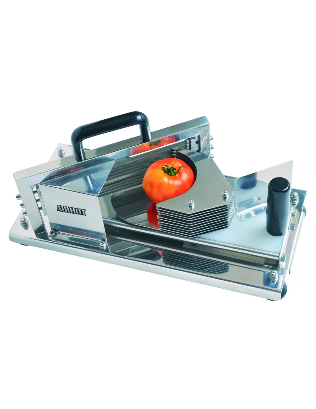 Слайсер для томатов Airhot TS-4 представляет собой специализированное профессиональное оборудование, предназначенное для быстрой и качественной нарезки помидоров на ровные, одинаковые ломтики. Использование данного устройства позволяет существенно сократить трудозатраты персонала на кухнях ресторанов, кафе, отелей и других предприятий общественного питания. Модель оснащена блоком из 13 острых ножей, которые обеспечивают идеальную толщину среза 4 мм. Аппарат рассчитан на работу с томатами максимальным диаметром до 80 мм. Весь корпус прибора выполнен из высококачественной нержавеющей стали, что гарантирует долговечность, стойкость к коррозии и соответствие санитарно-гигиеническим нормам. Для надежной фиксации на рабочей поверхности конструкция предусматривает четыре прорезиненные ножки, предотвращающие скольжение. При компактных габаритах 425x197x197 мм слайсер является мобильным и удобным инструментом для профессионального приготовления салатов, бургеров и других блюд, где важна эстетичная подача ингредиентов.