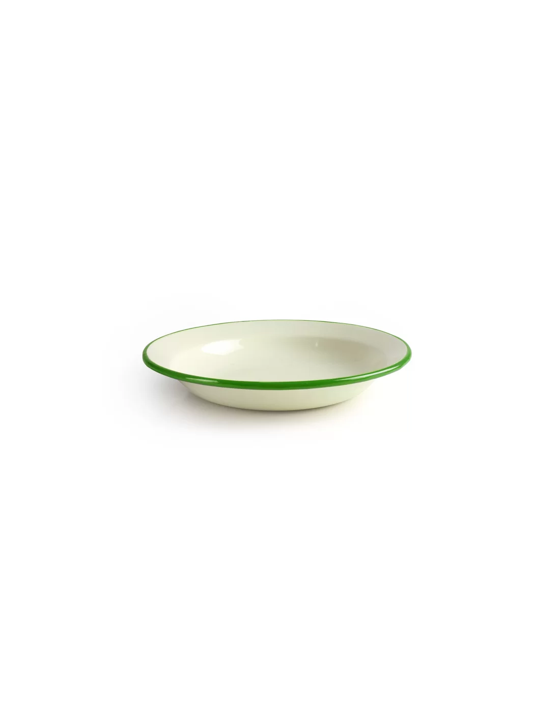 Тарелка глубокая эмалированная Ibili серии Musgo — это профессиональная посуда для сервировки в аутентичном винтажном стиле, изготовленная из высококачественной эмалированной стали с кремовой основой и насыщенным зеленым кантиком. Каждое изделие создается вручную, что придает ему уникальный характер и обеспечивает высокую износостойкость при ежедневном использовании. Благодаря инертности эмалевого покрытия тарелка абсолютно не впитывает посторонние запахи, устойчива к воздействию пищевых кислот и рассчитана на интенсивную мойку в посудомоечной машине, что гарантирует длительную эксплуатацию и сохранение яркости цветов в заведениях с ретро-атмосферой.