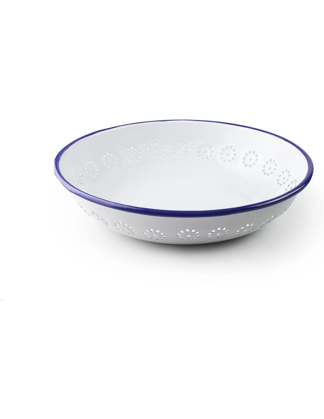 Фруктовница Ibili серии Blanca 902626 — это стильный и практичный аксессуар в классическом ретро-дизайне, предназначенный для элегантной сервировки стола. Изготовленная из высококачественной эмалированной стали, она отличается прочностью и устойчивостью к царапинам. Декоративная перфорация стенок обеспечивает постоянную циркуляцию воздуха, благодаря чему фрукты дольше остаются свежими. Это изделие ручной работы, где белое покрытие и синий кантик наносятся вручную. Фруктовница имеет диаметр 26 см, высоту 6 см, не впитывает запахи и пригодна для мытья в посудомоечной машине, сочетая аутентичный вид с современным комфортом.