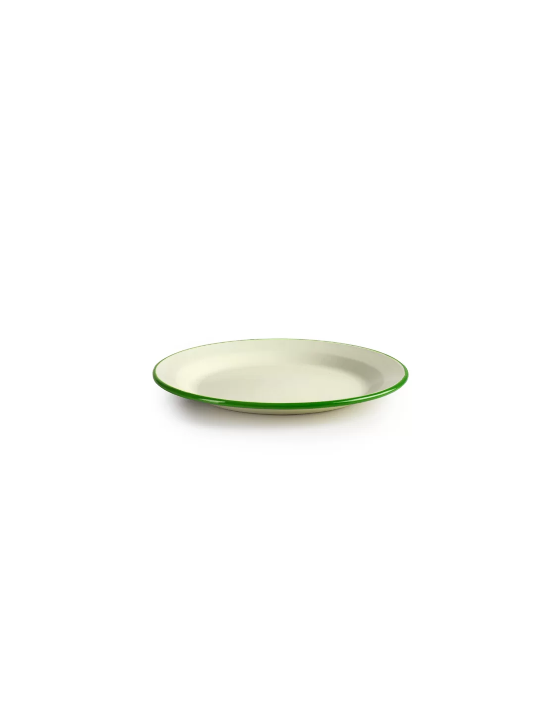 Тарелка обеденная эмалированная Ibili серии Musgo — это профессиональная посуда для сервировки в аутентичном винтажном стиле, изготовленная из высококачественной эмалированной стали с кремовой основой и насыщенным зеленым кантиком. Каждое изделие создается вручную, что придает ему уникальный характер и обеспечивает высокую износостойкость при ежедневном использовании. Благодаря инертности эмалевого покрытия тарелка абсолютно не впитывает посторонние запахи, устойчива к воздействию пищевых кислот и рассчитана на интенсивную мойку в посудомоечной машине, что гарантирует длительную эксплуатацию и сохранение яркости цветов в заведениях с ретро-атмосферой.