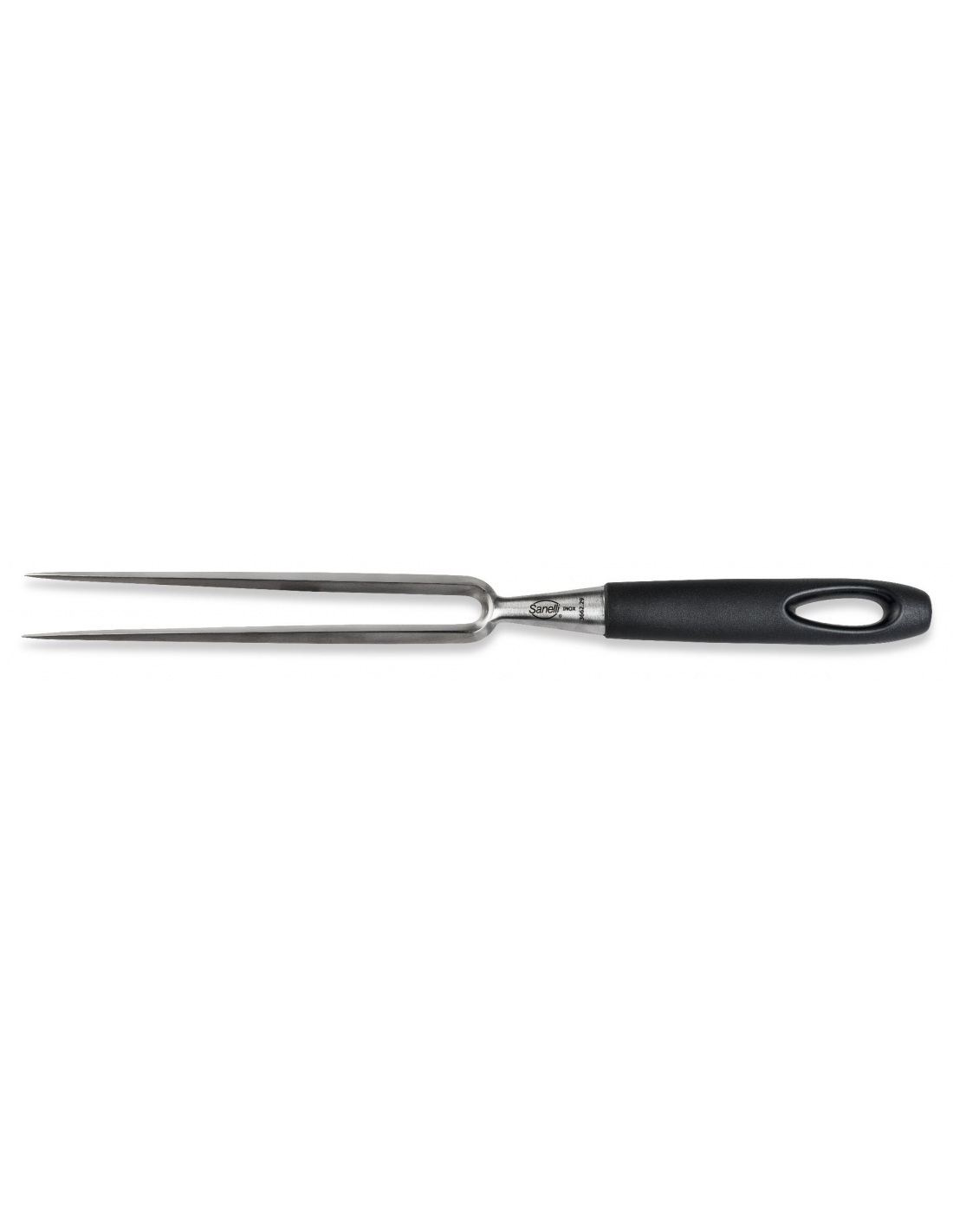 Профессиональная кулинарная вилка для мяса Sanelli 366229 из серии Skin имеет общую длину 29 см и является незаменимым помощником при работе с горячими блюдами. Она специально разработана для надежной фиксации жаркого или крупных кусков мяса во время нарезки, а также позволяет безопасно извлекать курицу или другие продукты прямо из кастрюли или духовки, избегая риска ожогов. Острые зубцы позволяют легко проверять готовность блюд, не повреждая их структуру. Рабочая часть изготовлена из высококачественной нержавеющей стали, отличающейся прочностью и устойчивостью к коррозии. Главной особенностью серии Skin является инновационная эргономичная рукоятка с уникальной текстурированной поверхностью, которая гарантирует максимально надежный захват и контроль, предотвращая скольжение руки даже во влажной среде. Материал рукоятки полностью соответствует строгим гигиеническим нормам HACCP. Изделие устойчиво к профессиональной стерилизации и подходит для регулярного мытья в посудомоечной машине.