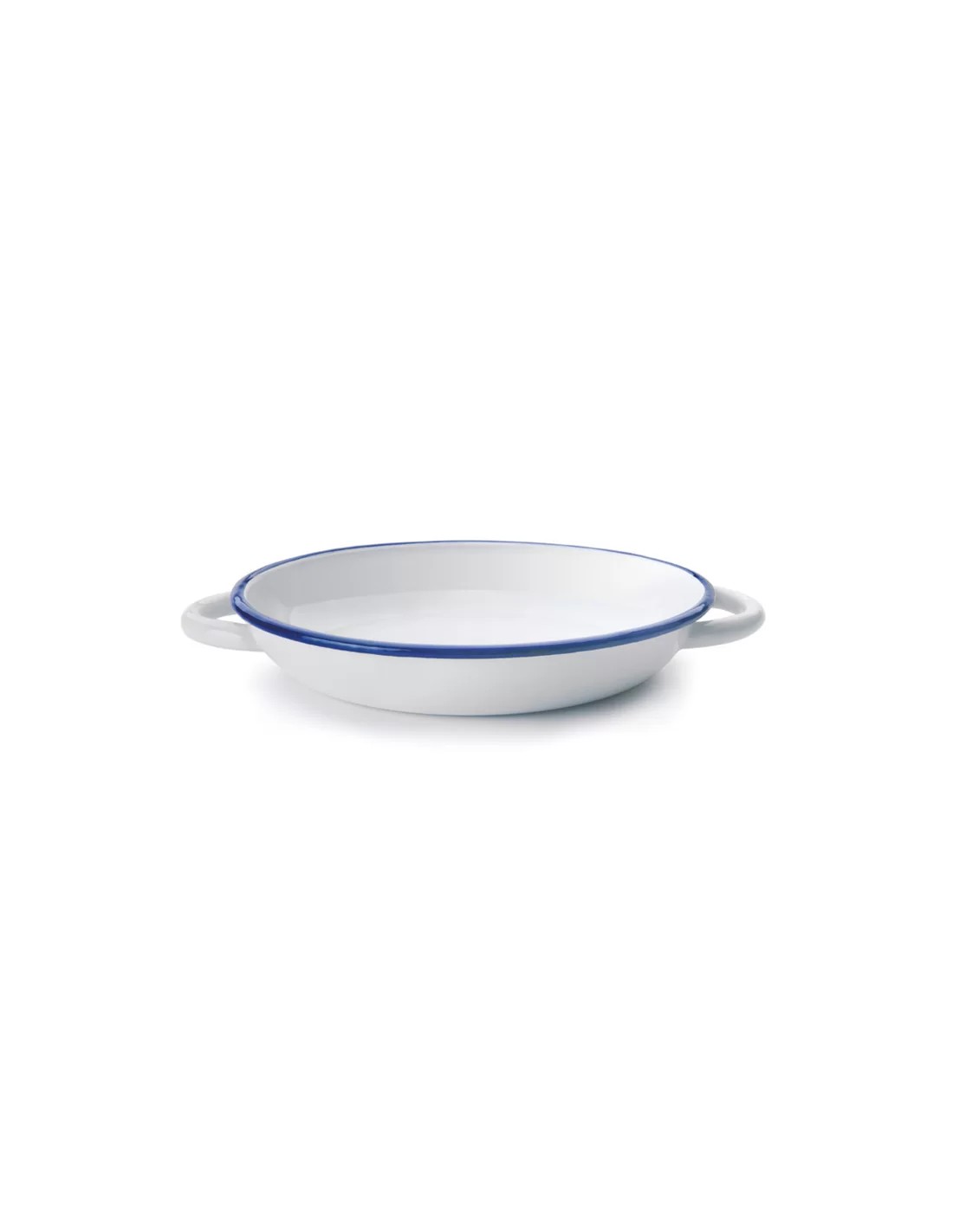 Сковорода емальована з двома ручками Ibili серії Blanca 904122 — це професійний посуд для приготування та ефектної подачі страв, виготовлений із високоякісної вітрифікованої емальованої сталі. Завдяки сталевій основі вона ідеально підходить для використання на газових плитах, а висока термостійкість дозволяє запікати або доводити страви до готовності в духовій шафі, що дає змогу подавати замовлення максимально гарячим прямо до столу. Кожен виріб виготовляється вручну: майстри власноруч наносять білосніжну емаль та темно-синій кантик, гарантуючи унікальність кожного предмета. Посуд має діаметр 22 см та висоту 4 см, він стійкий до подряпин і фруктових кислот, не вбирає запахи та придатний для інтенсивного миття в посудомийній машині, зберігаючи свій первинний вигляд навіть за щоденного професійного використання.