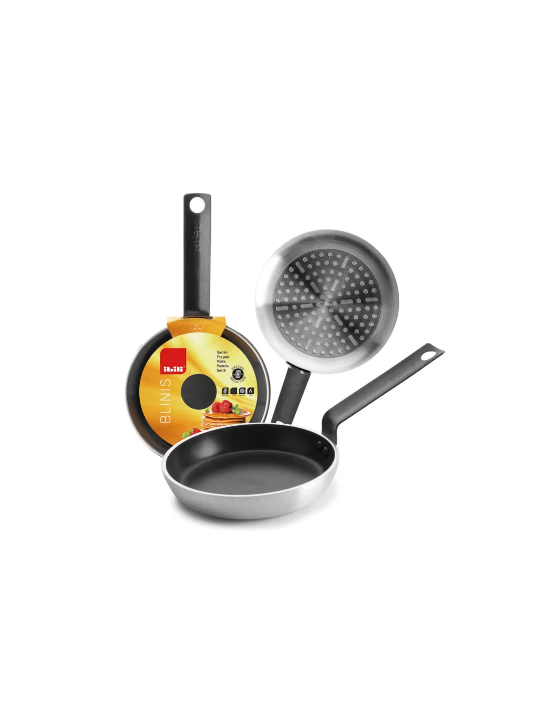 Сковорода для млинців діаметром 14 см виготовлена з алюмінію та оснащена ручкою з нержавіючої сталі. Виріб має товщину 4 мм, що робить його міцним та стійким до деформації. Сковорода має високоякісне двошарове антипригарне покриття, яке не містить PFOA. Дана модель підходить для використання на всіх типах варильних поверхонь, включаючи індукційні, а також придатна для духових шаф при температурі до 230°C. Висота стінок складає 2,8 см, а діаметр дна виробу — 10 см.