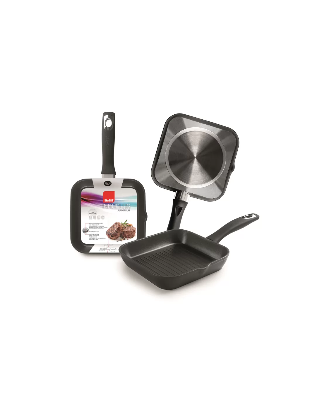 Сковорода-гриль Ibili серії New Induplus 400318N — професійний кухонний інструмент квадратної форми розміром 18х18 см, виготовлений із міцного алюмінію товщиною 5 мм, що гарантує стійкість до деформацій та довговічність. Рифлена поверхня забезпечує характерний візерунок гриля та правильне приготування страв, а наявність спеціального носика дозволяє зручно зливати зайвий жир або соки. Модель оснащена високоякісним двошаровим антипригарним покриттям без вмісту PFOA та дифузорним дном Full Induction, що забезпечує швидкий рівномірний прогрів на всіх типах плит, включаючи індукційні. Ергономічна ручка з бакеліту з покриттям Soft Touch не нагрівається та забезпечує максимальний комфорт під час готування.