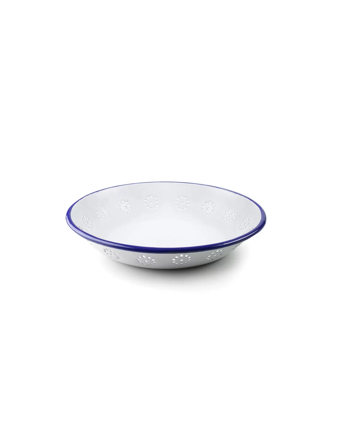 Хлібна тарілка Ibili серії Blanca 902624 — це автентичний кухонний аксесуар, виготовлений із високоякісної емальованої сталі. Головною особливістю є перфоровані стінки, які забезпечують необхідну циркуляцію повітря для збереження свіжості випічки. Виріб є результатом ручної роботи: біла емаль та фірмовий синій кантик наносяться майстрами вручну, що надає кожному екземпляру неповторного вигляду. Тарілка має діаметр 24 см та висоту 4 см, вирізняється стійкістю до подряпин, температурних перепадів і придатний для миття в посудомийній машині. Його вінтажний дизайн ідеально підходить для затишного сервірування столу в стилі кантрі або прованс.